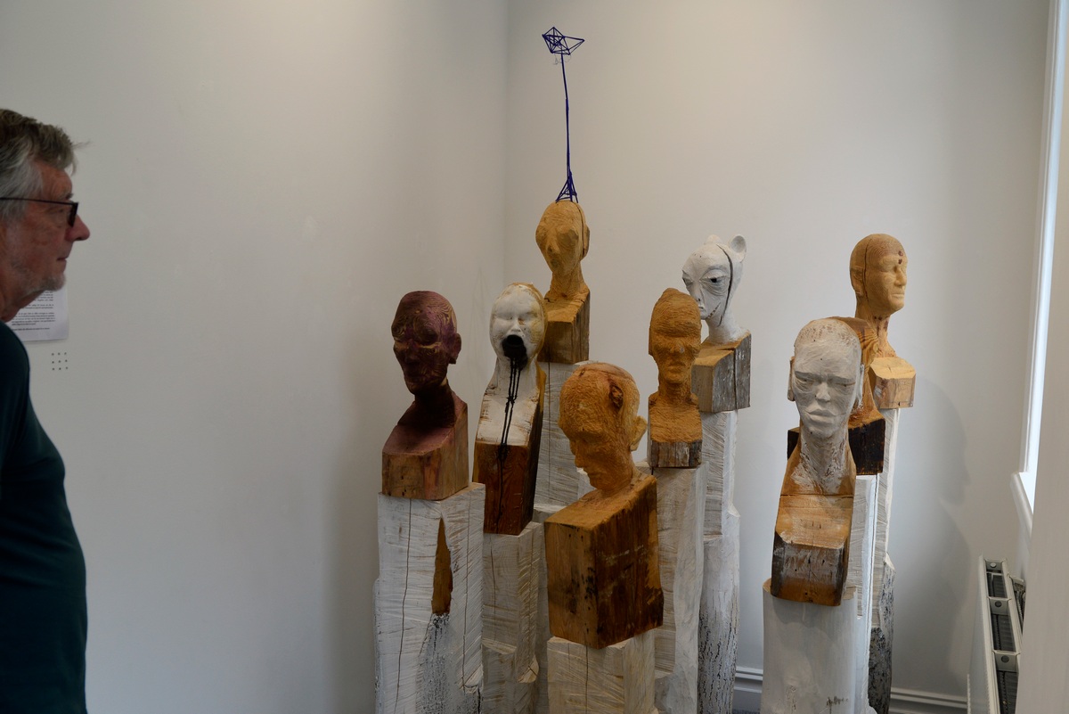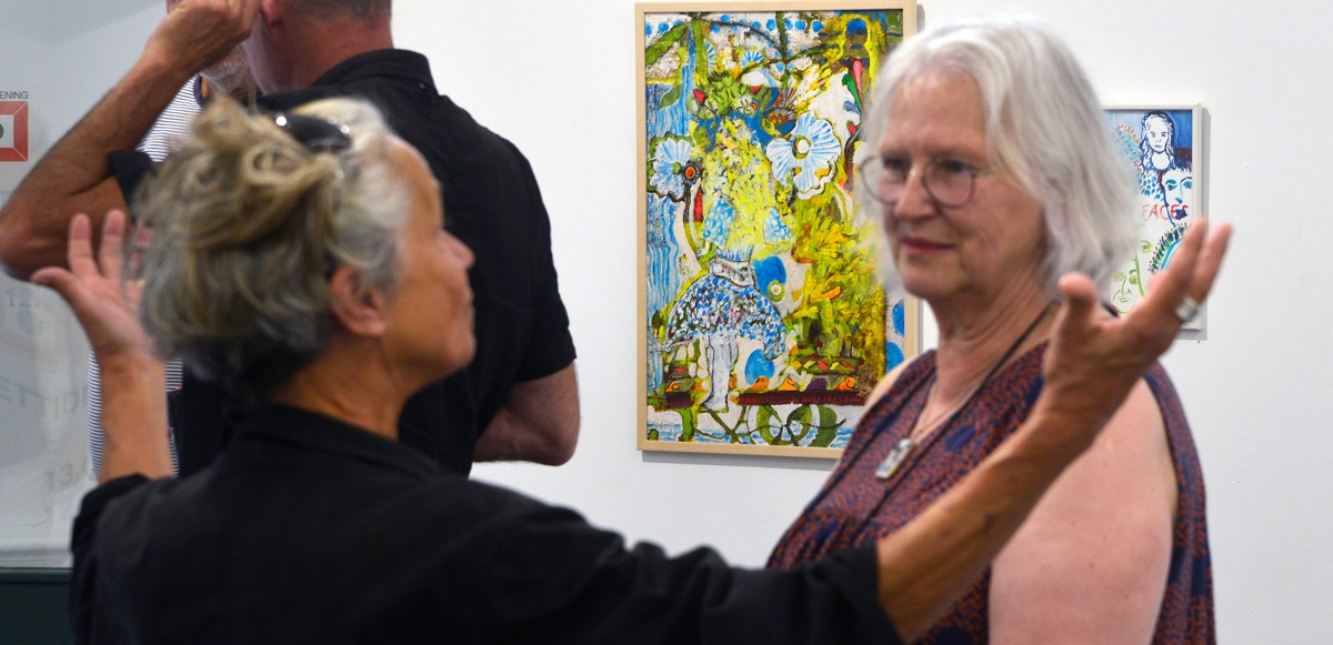 Lizz visar måleri samt grafik och Shelley skulptur.