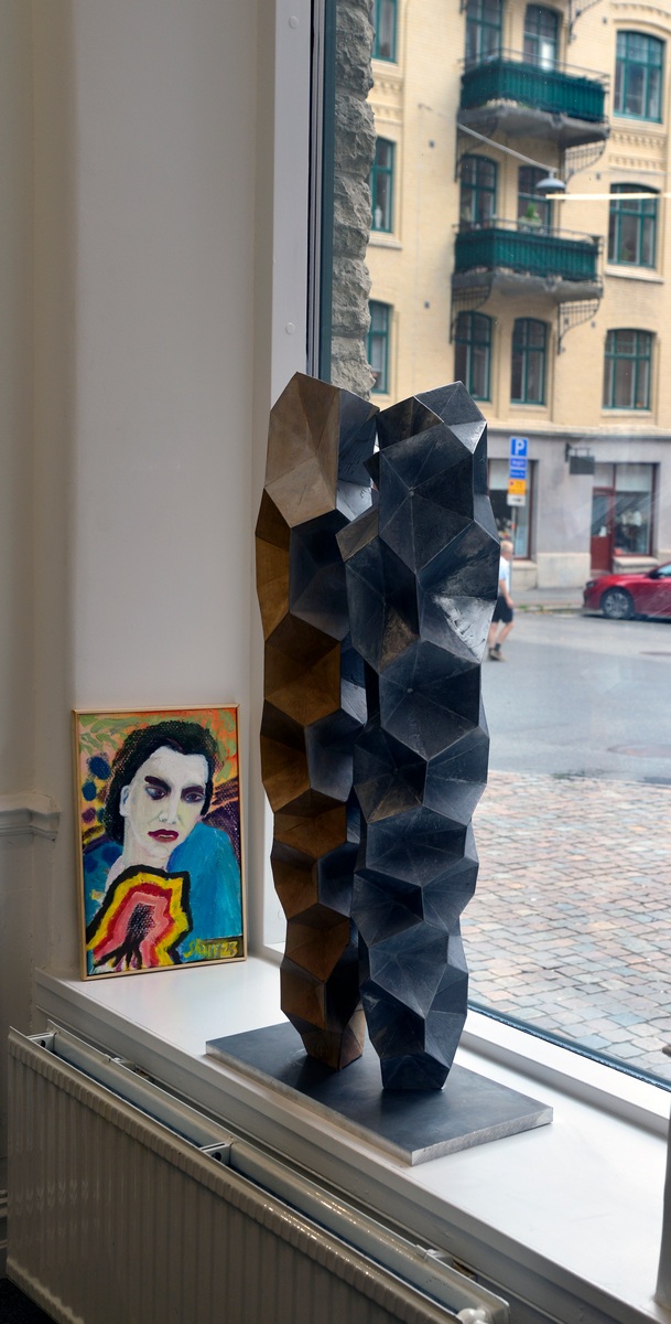 Lördagen den 19 augusti besökte jag fyra vernissager i Göteborg. Först blev det en promenad till Kastellgatatan. Där har Galleri Göteborgs Konstförening startat hösten med 2 x Sharr. Det är Lizz Sharr och hennes äldsta son Shelley, som vi inte sett så mycket av tidigare i Göteborg, eftersom han har varit verksam på Gotland. Numera bor han även i Göteborg.