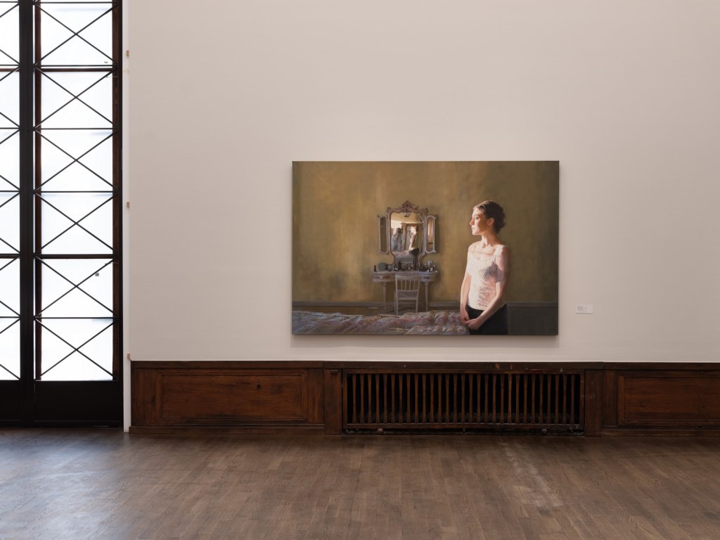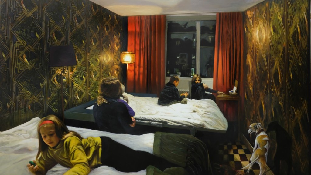 Några har jag svårare för, som det stora blå från 2010. Jag tycker mycket om skildringen av den sovande modern och barnet. Men det där blå överkastet som är ett mellanting mellan textil och vatten, det är bara för mycket. Jag blir sjösjuk av alla krusiga veck och gissar att det är troheten mot ett fotos blick som gör bilden så underlig.