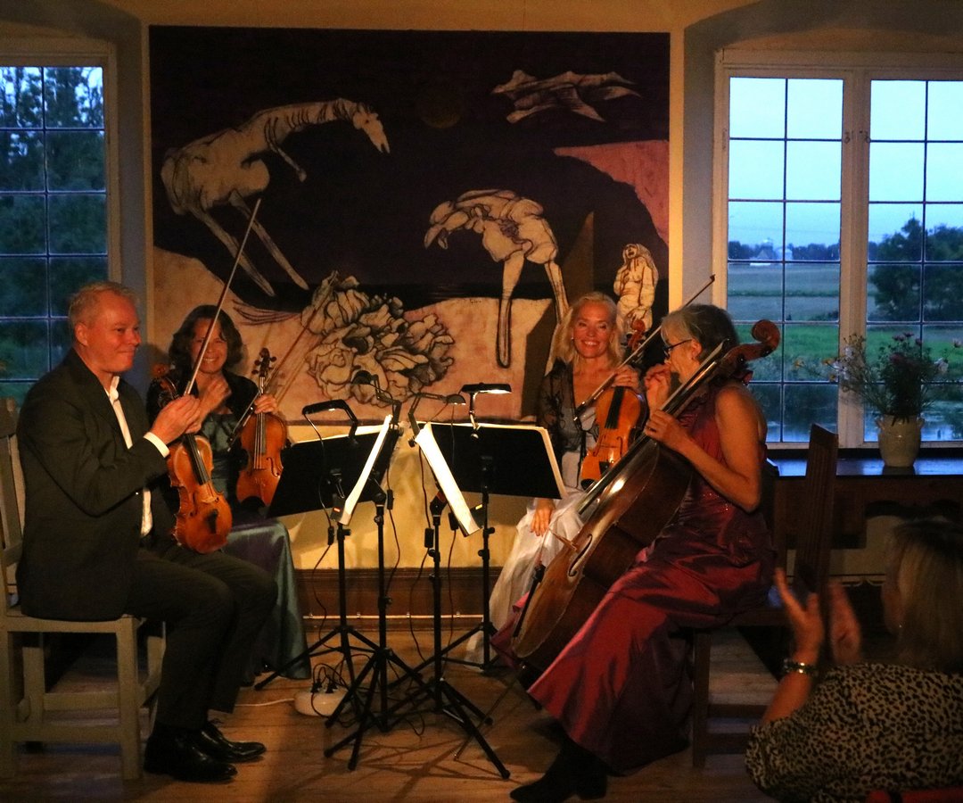 En solig sommarkväll en knapp vecka innan var det konsert med modern popmusik med elgitarr i kompet. Så kom den här konserten med en stråkkvartett en grå kväll med regntunga skyar.