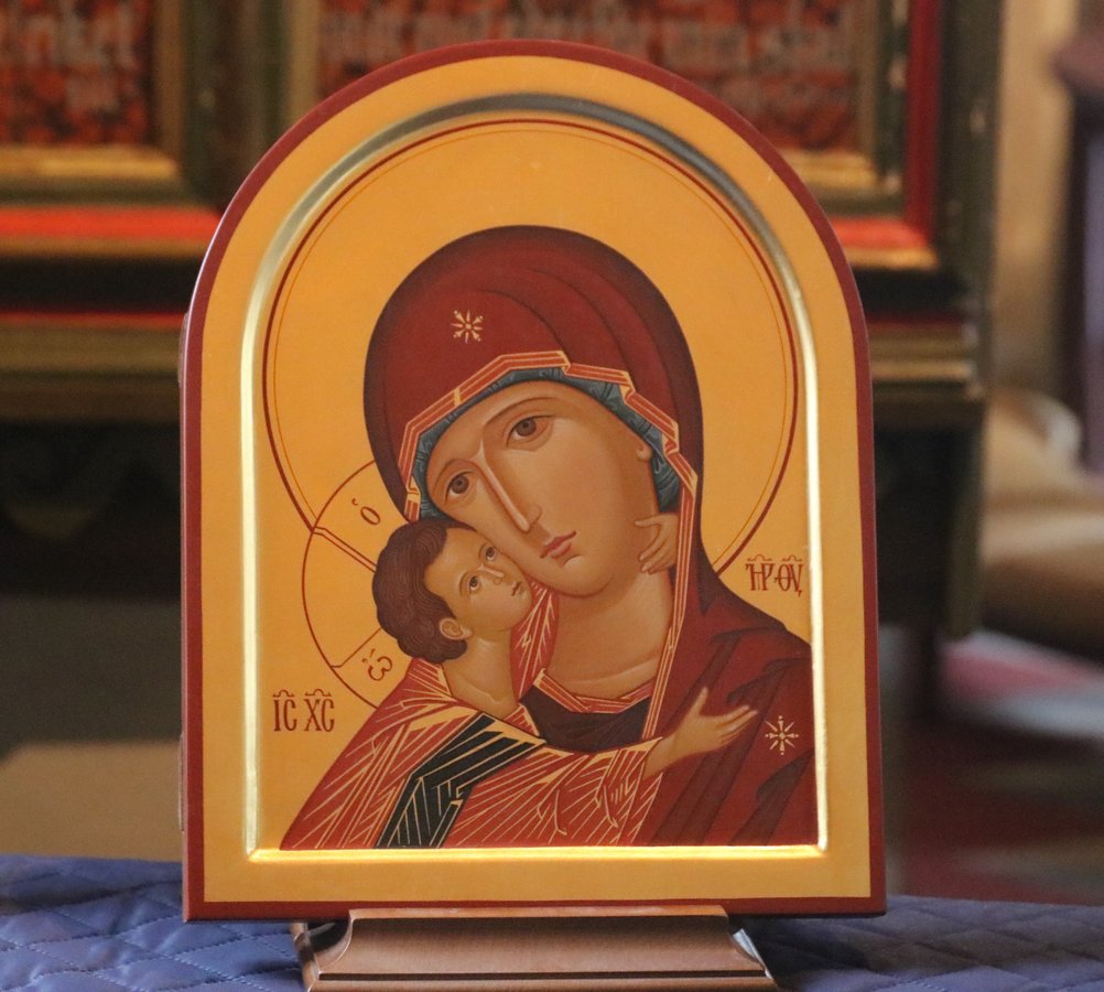 Ikoner är bilder som ska användas för bön och gudstjänst. De ska fungera som ett ”fönstermot himlen”. Ikonerna avbildar bland annat Jesus, änglarna och helgon, ”det som finns i himlen”. De innehåller ofta stora partier av guld för att spegla det himmelska.