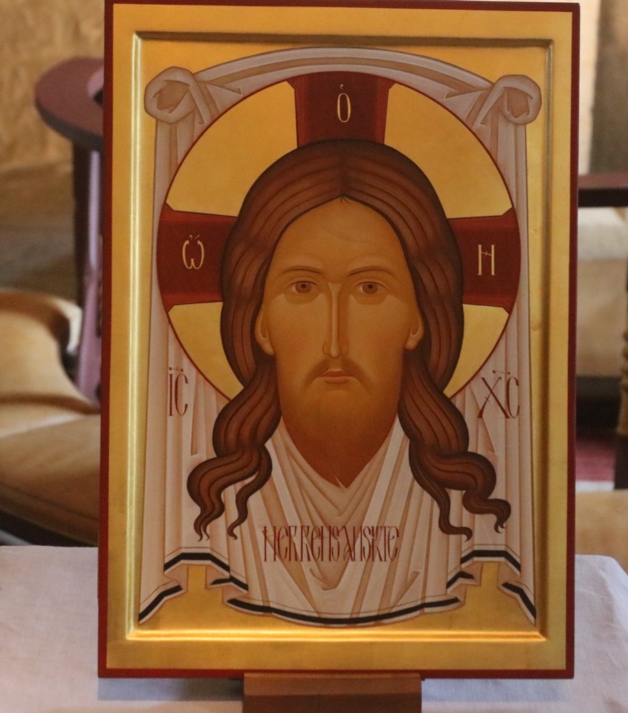 I kyrkan visades tre fantastiska ikoner ur Robin Johanssons produktion. Dels en stor bild av Kristus allhärskaren. En annan visar Maria Med Jesusbarnet och en tredje Johannes döpare. Johannes skildras som hel person som samtidigt bär sitt huvud på det fat Salome fick det på.