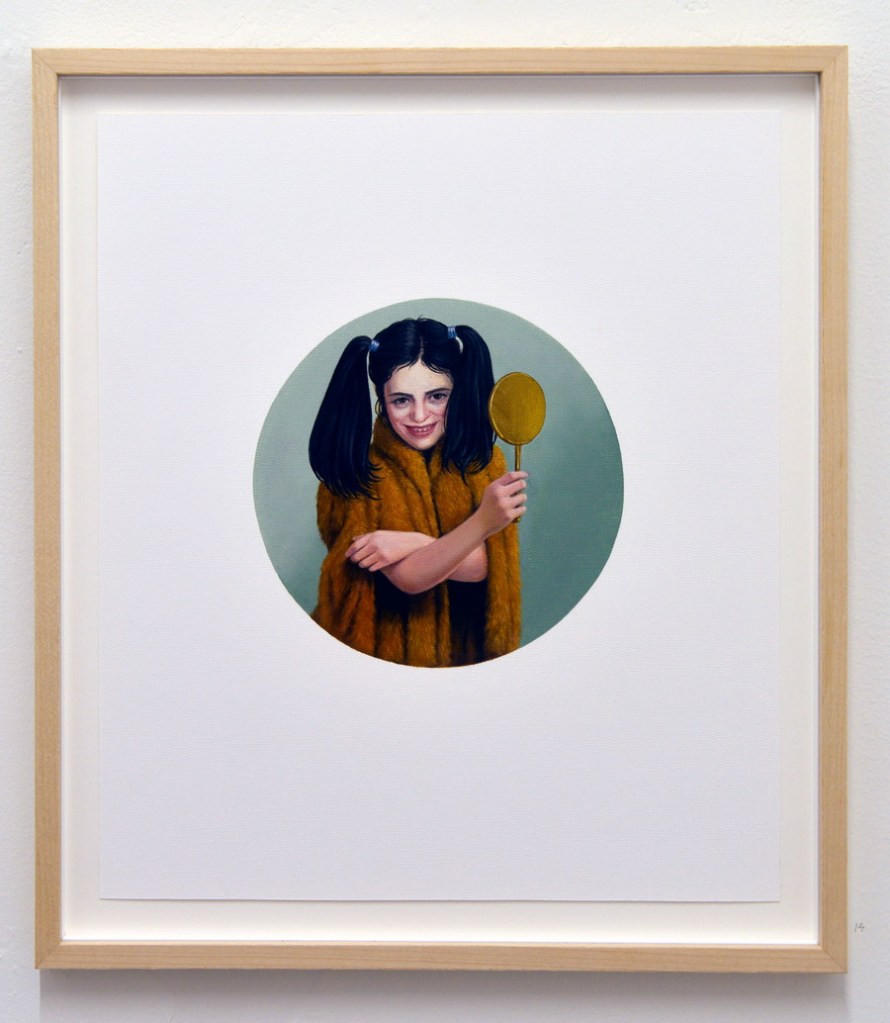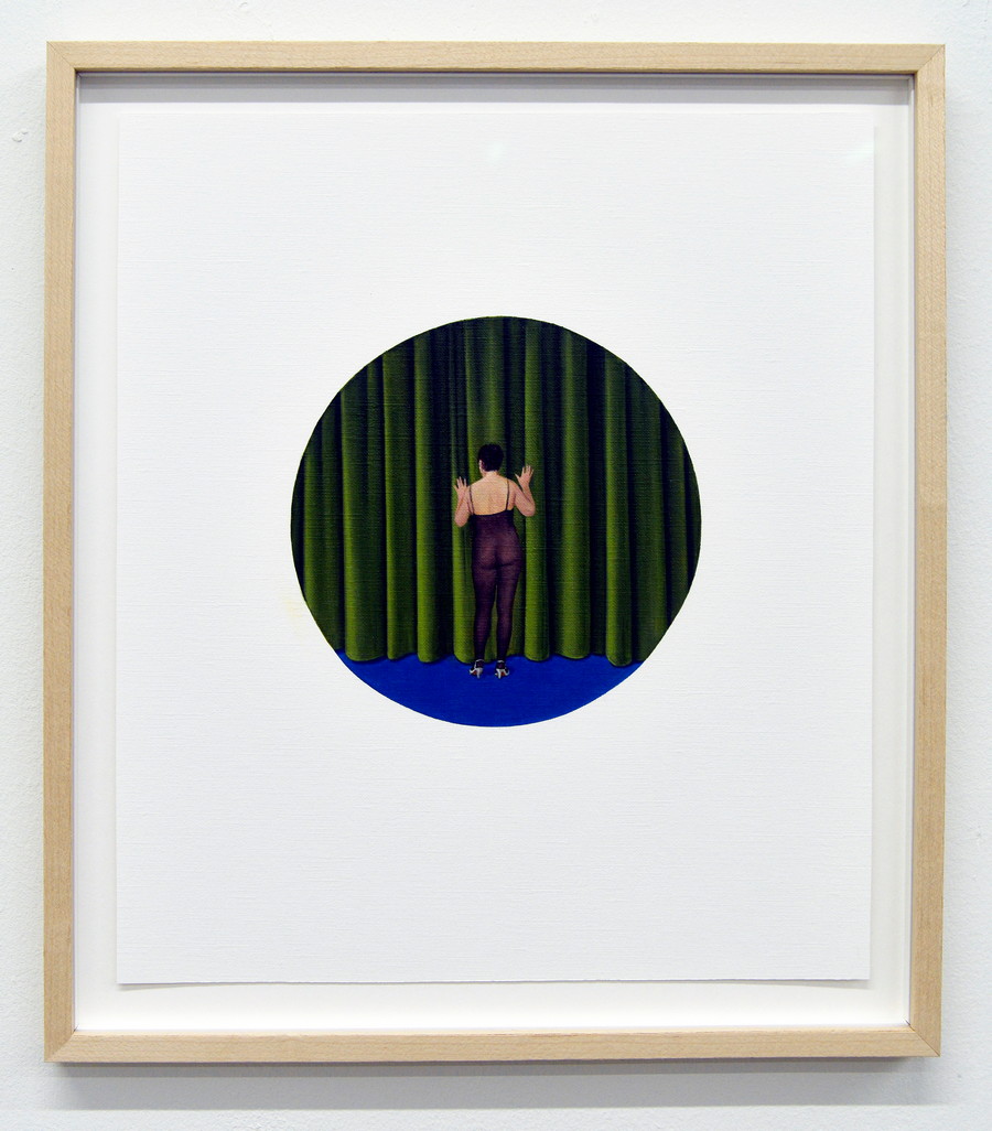 Kalypso med nyuppsatt hår, 2023, ø 16 cm, olja på papper — Han skulle komma ut redan i första akten, 2023, ø 16 cm, olja p.p