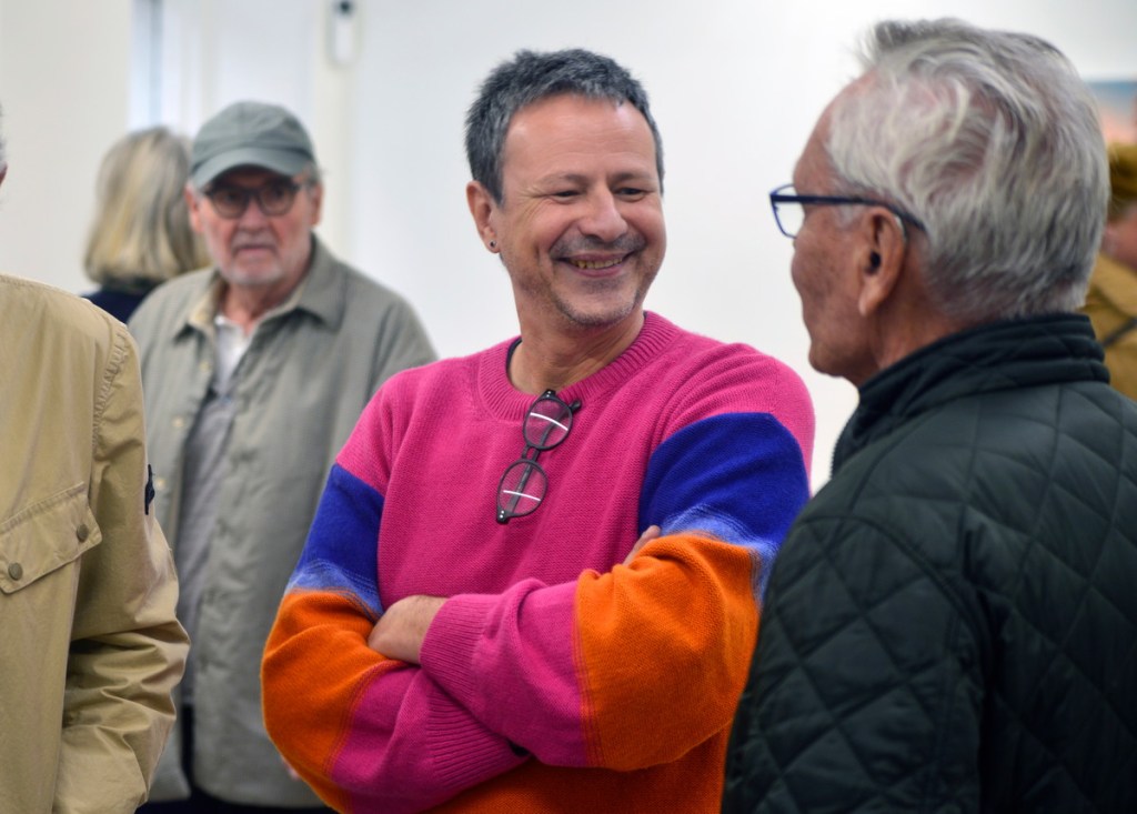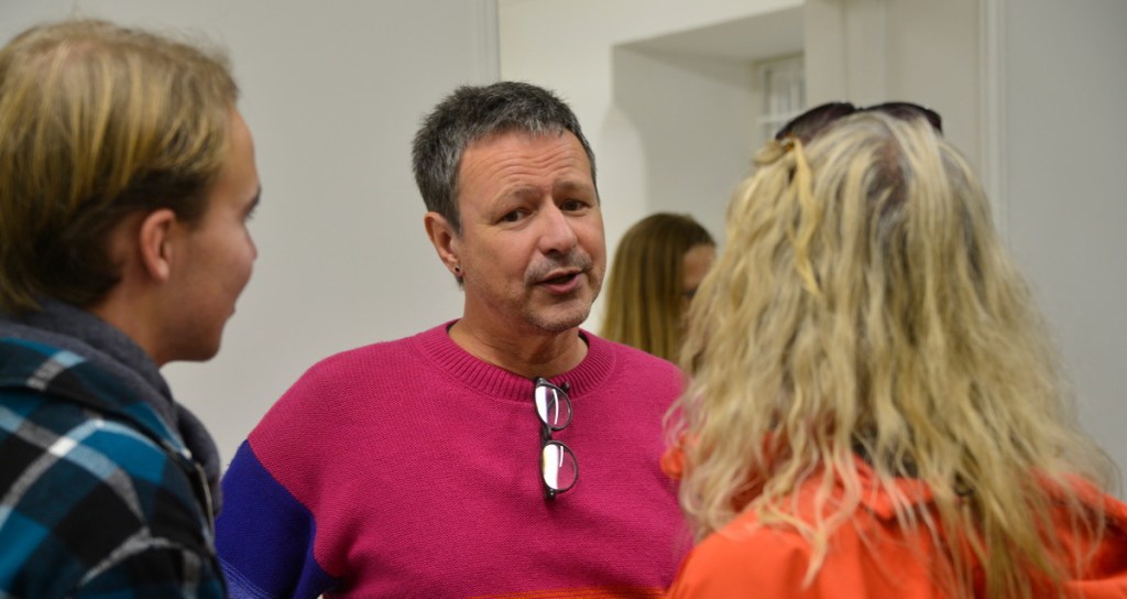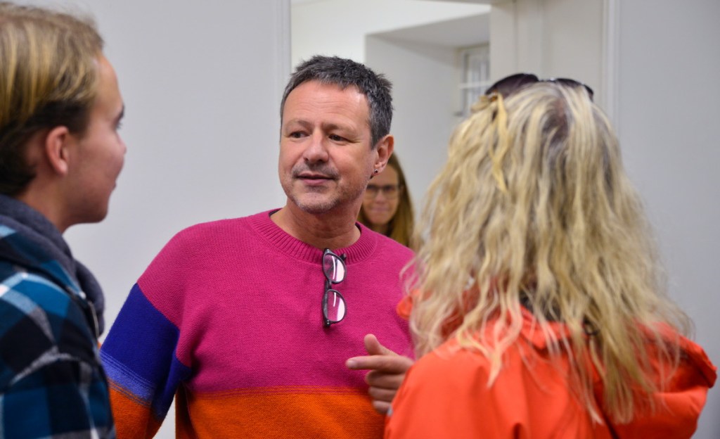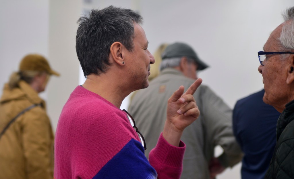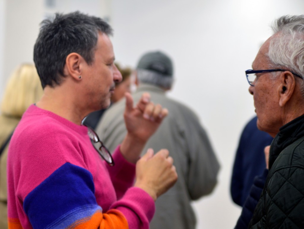 Konstnären samtalar med besökarna