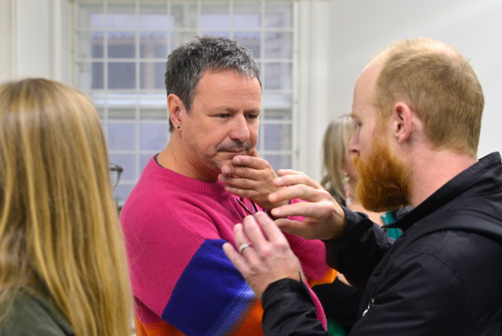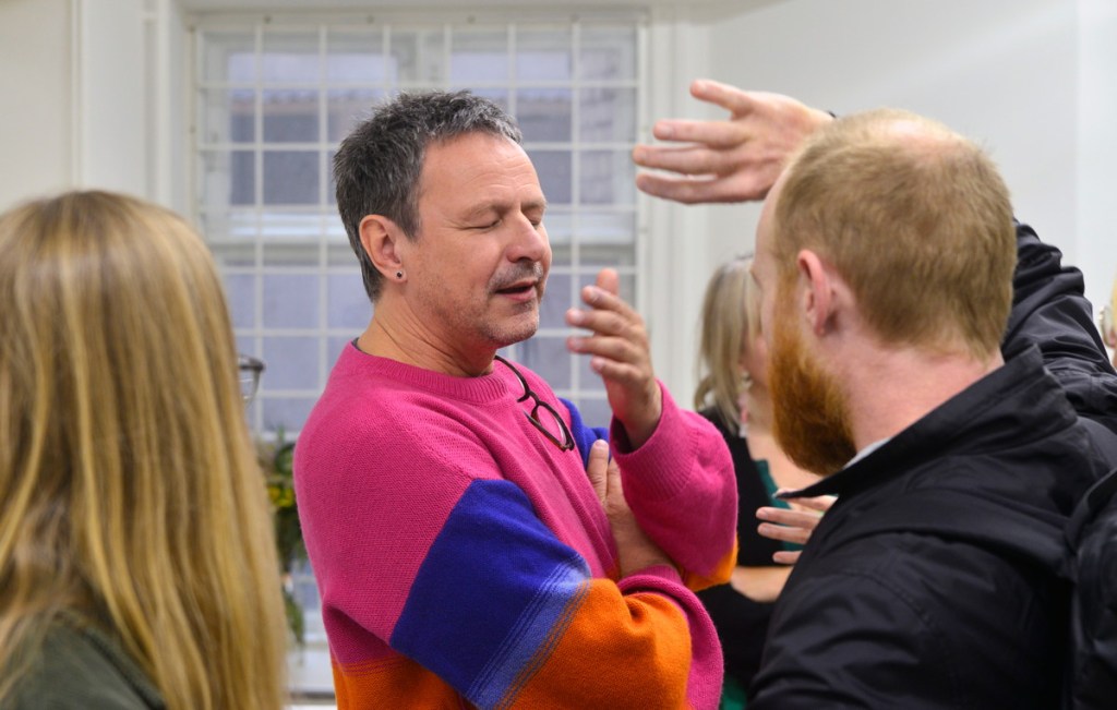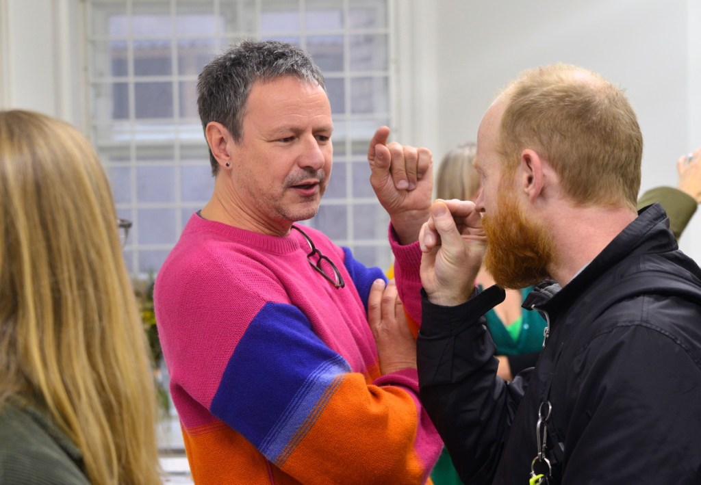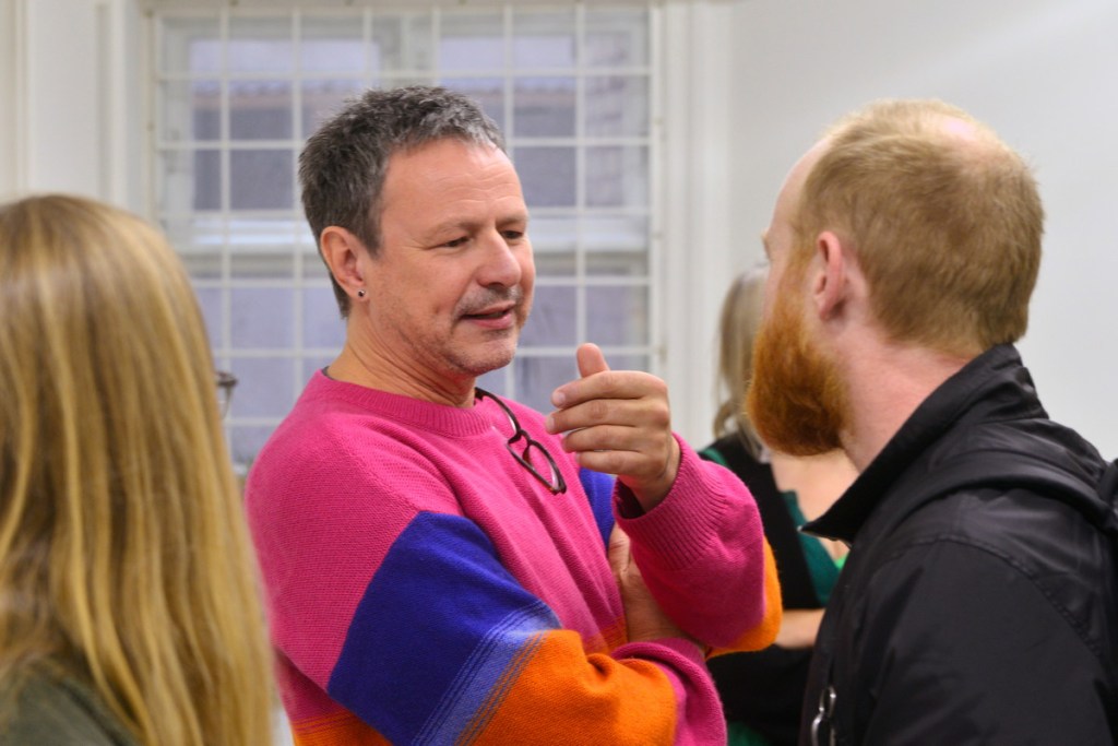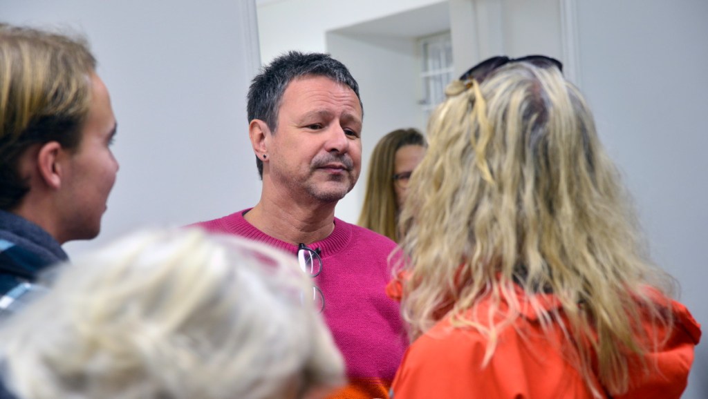 Konstnären samtalar med besökarna
