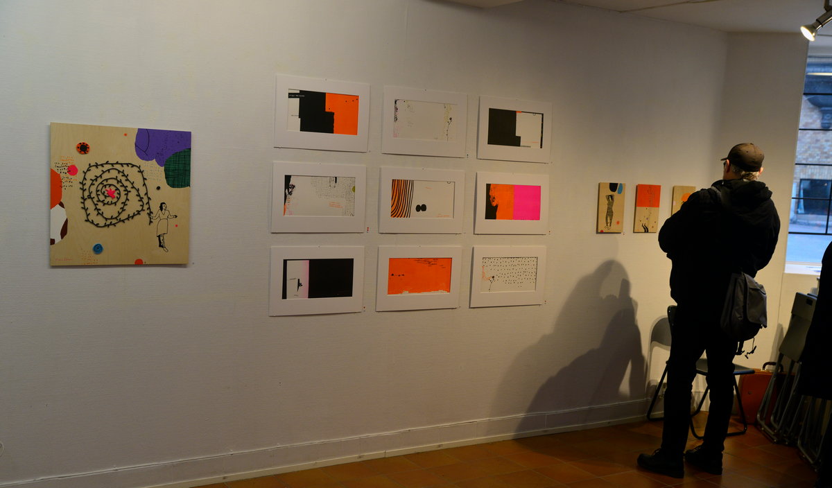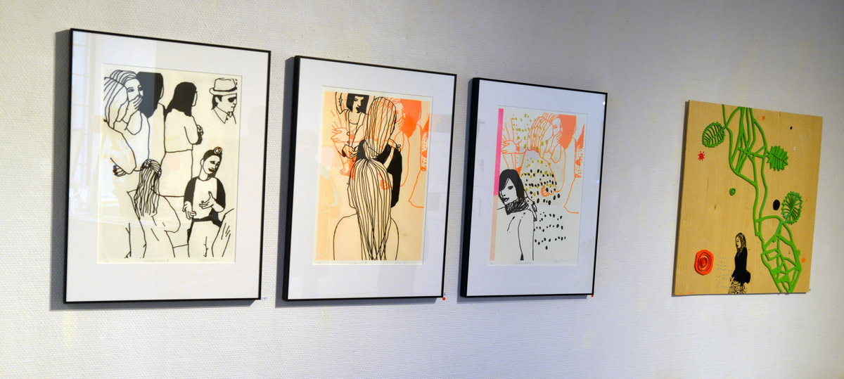 Några få meter till så är vi hos Göteborgs Konstförening. De visar Felicia Björklund och Frida Åström.