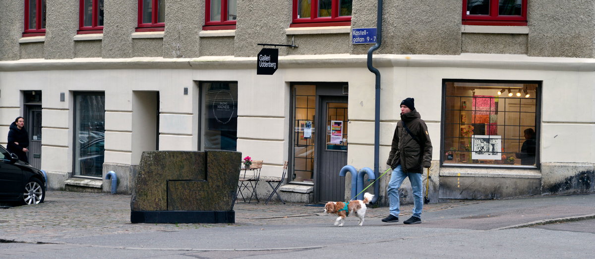 Vi börjar i den ena ändan av gatan. Galleri Box ligger i backen ner mot Kastelltorget. De visar en utställning Who needs a heart when a heart can be broken av Tina Damgaard, Elin Engström och Sarah Lee Armstrong. I en flerkanalig videoinstallation möter man de fyra arketyperna Weaver, Cosmos, Blood och Caretaker. Karaktärerna befinner sig någonstans i gränslandet mellan levande och död materia, mellan det kroppsliga och det konstruerade, i en isolerad förbindelse.