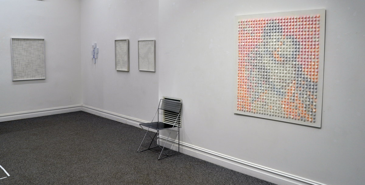 Här samsas stora textila screentryck med mindre grafiska blad och ”konstnärsböcker”.