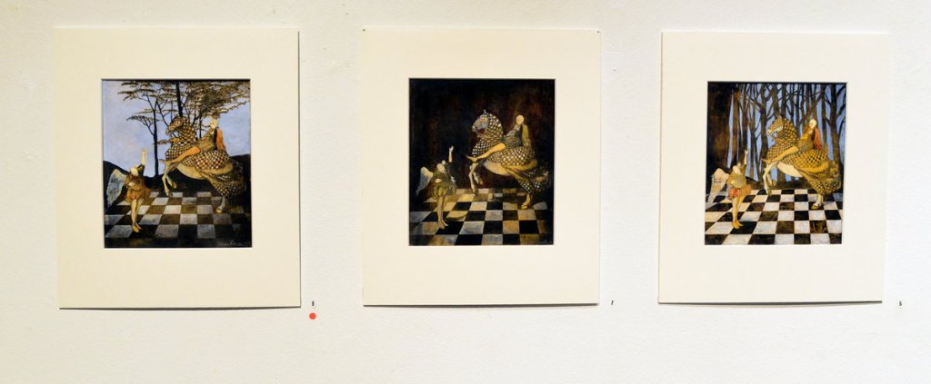 Marta Runemark ställer ut hos Galleri Aveny. Hon skapar en sorts sagovärld för vuxna. Medeltid med ett stänk av fantasy.