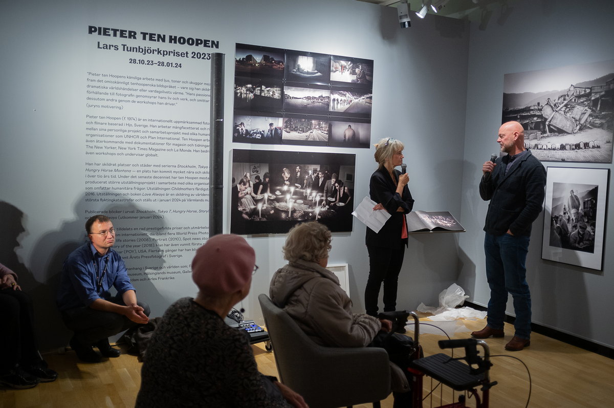 Juryns motivering: Pieter ten Hoopens känsliga arbete med ljus, toner och skuggor mejslar fram det omisskännligt tenhoopenska bildspråket – vare sig han skildrar dramatiska världshändelser eller vardagslivets värme. Hans passionerade förhållande till fotografin genomsyrar hans liv och verk, och smittar dessutom andra genom de workshops han driver.
