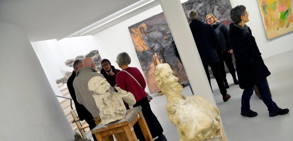 Hos Thomassen finns mycket att se och begrunda från Framtidsmålningen från 60-talet via skulptur i brons och verk på papper till den stora diptyken Finlandssviten i fiberbetong.