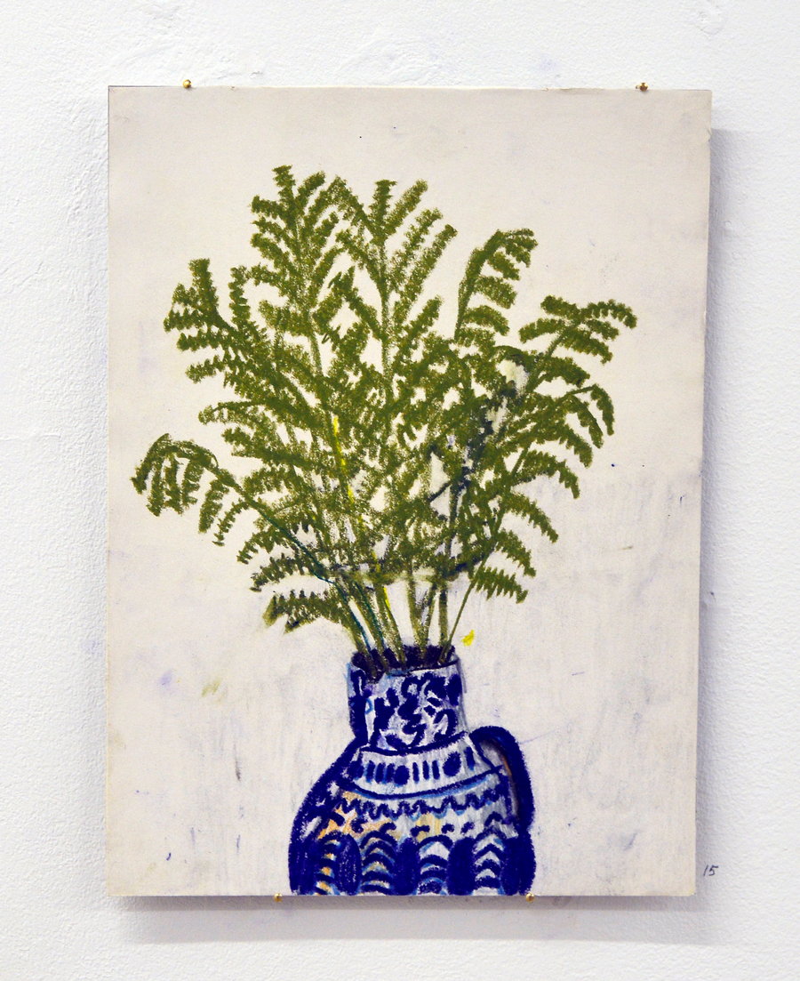 Ina, Hans og Bror 2013, 30×40 cm (t.v. ö) — Bo 2023, 35X42 cm och Den allmenne uroen 2022, 36x42cm (t.v. n.) — Bregne 2022, 28x21cm (t.h.)
