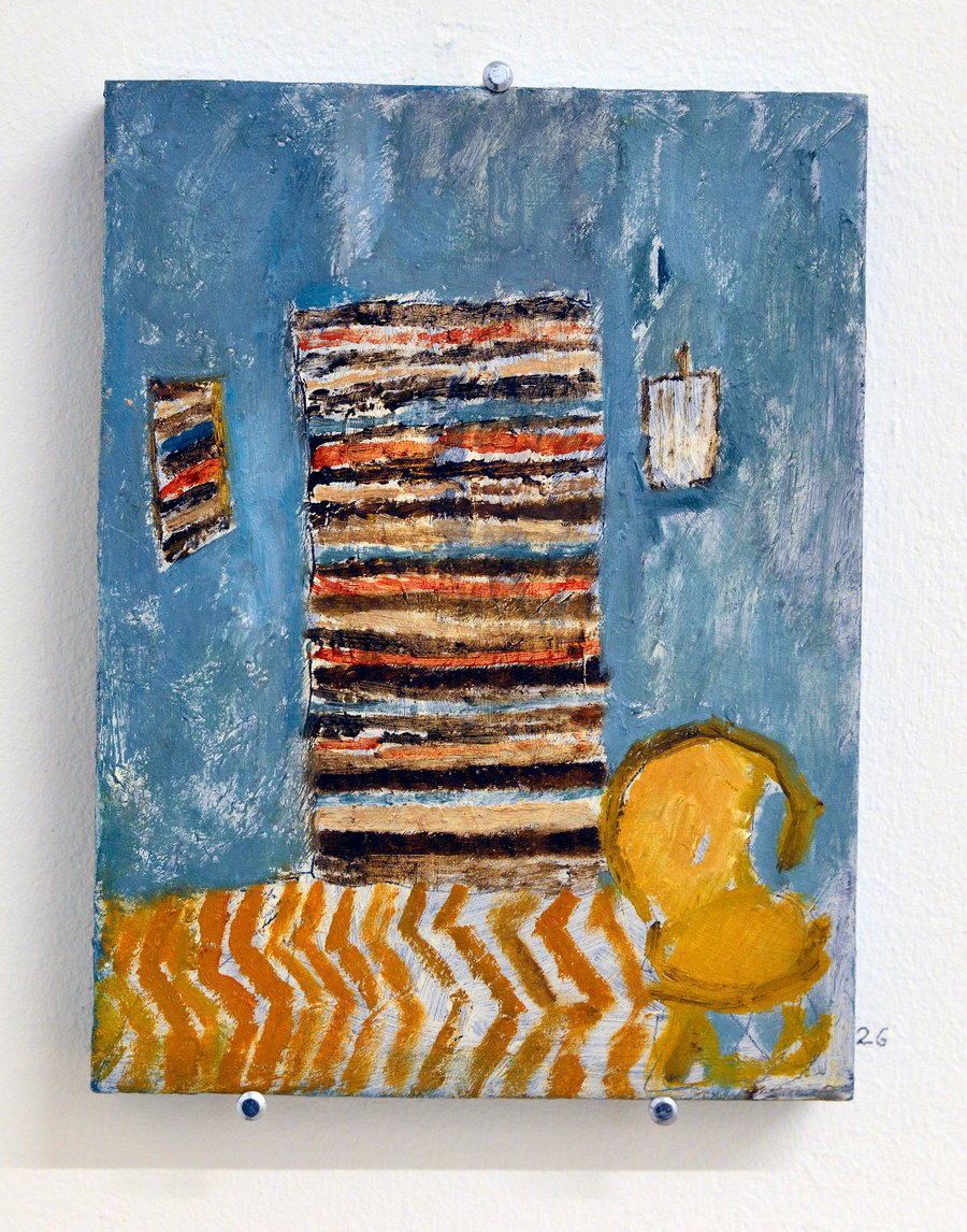 Birgittas tekstil, speil og stol 2023, 20×15 cm — Hullete votter på tork i april 2022, 20×14 cm — Resan 2018, 20×19 cm