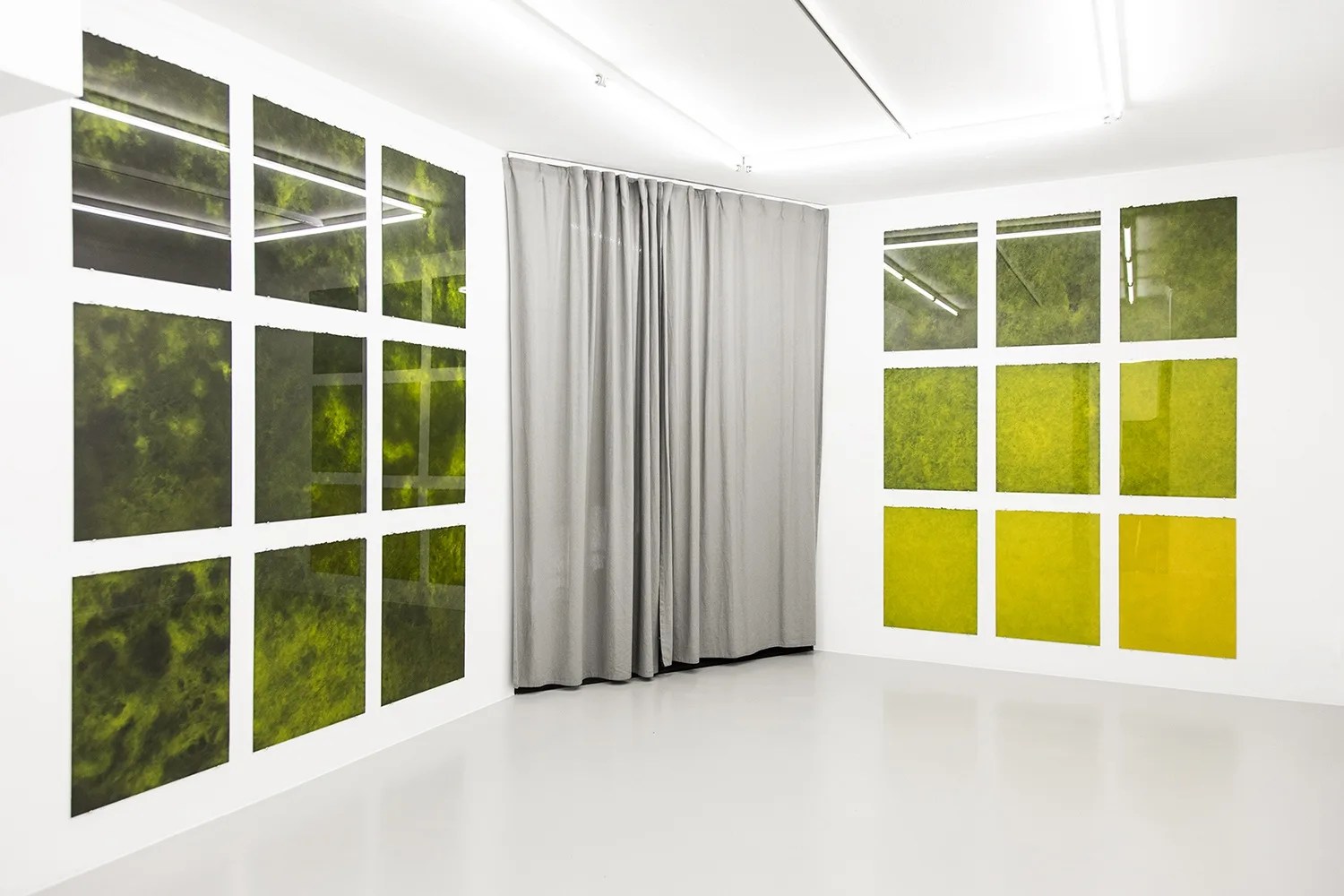 I mötet mellan färgerna uppstod som en grön ”gräns” när den skarpa motsättningen mellan gult och svart upplöstes och en tredje färg tog plats. Målningarna resulterade i en utställning som kallades Macula Lutea 2019.