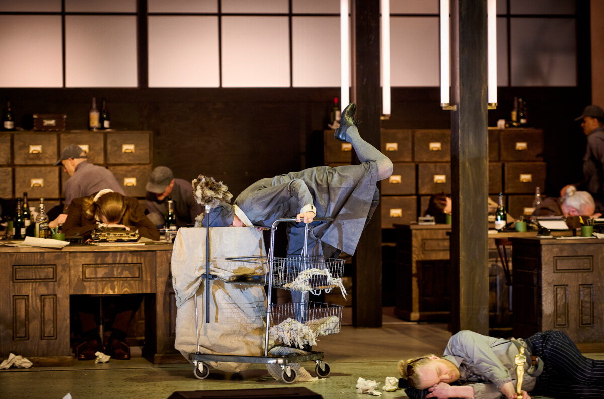 Upplägget i den här uppsättningen är innovativt på ett kul sätt. Det börjar i typ femtiotalet i en arbetslokal för skribenter som i brist på idéer supit uppgivet i skrivarkontorslandskapet. De sover nu ruset av sig och väcks av kvinnliga nippertippor som vässar deras pennor. Manliga skapare och kvinnlig servicepersonal, samma gamla könsroller som tvåhundra år tidigare.