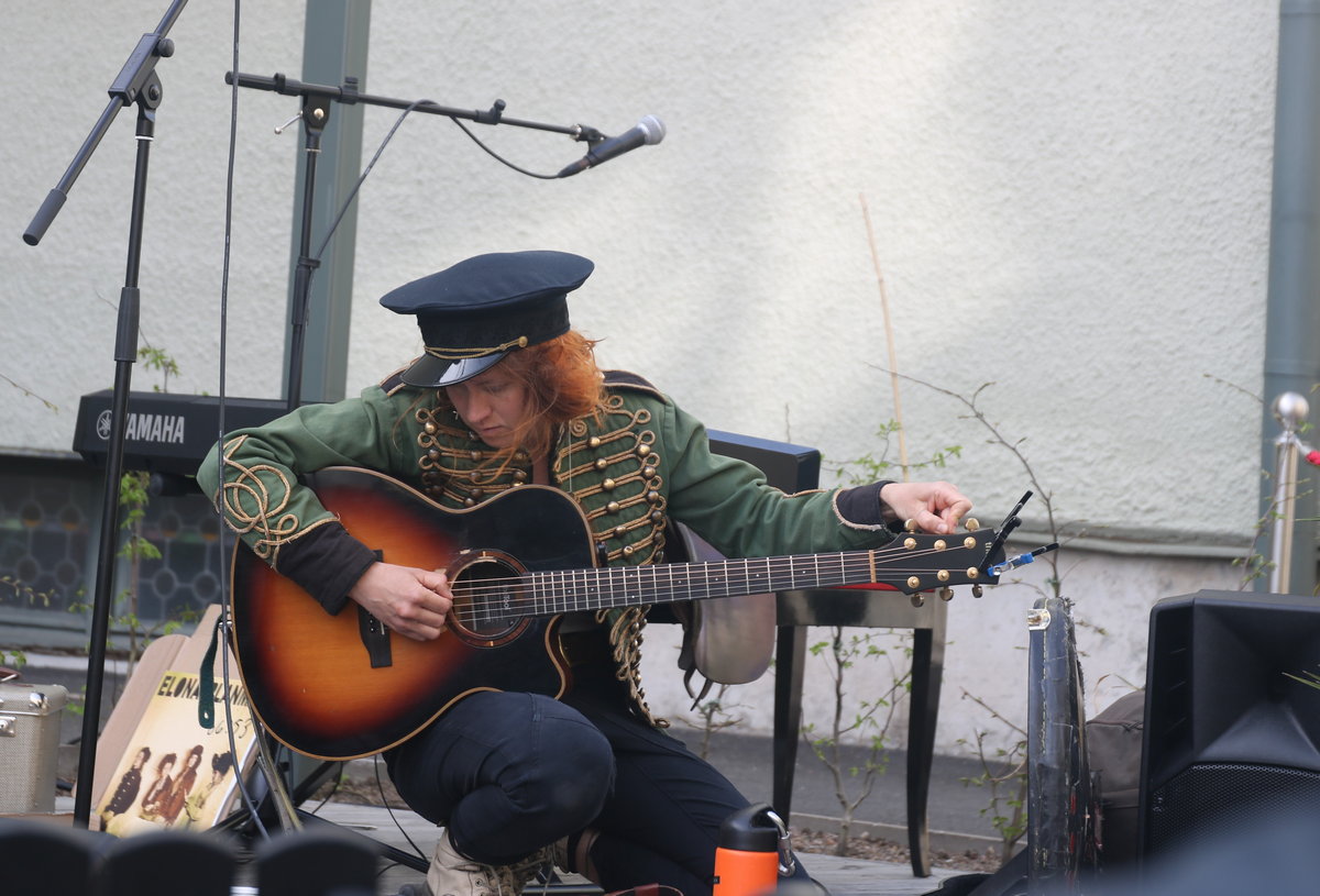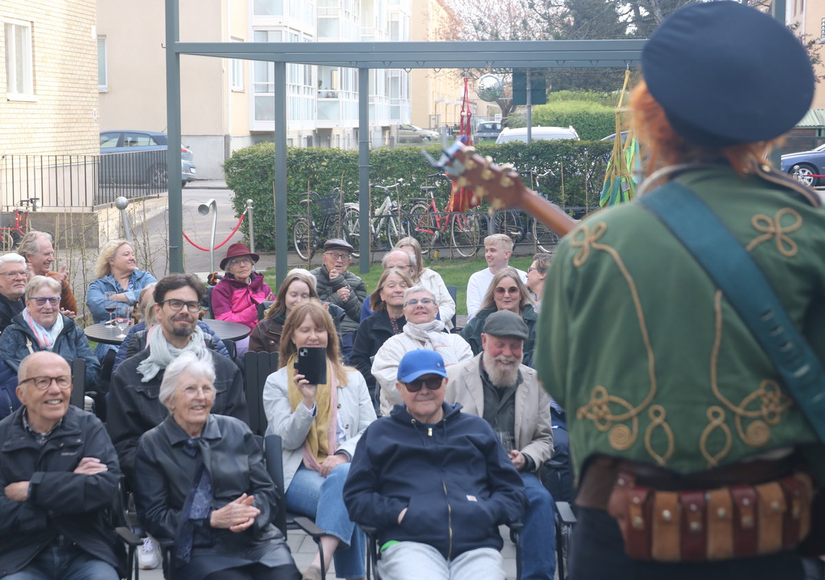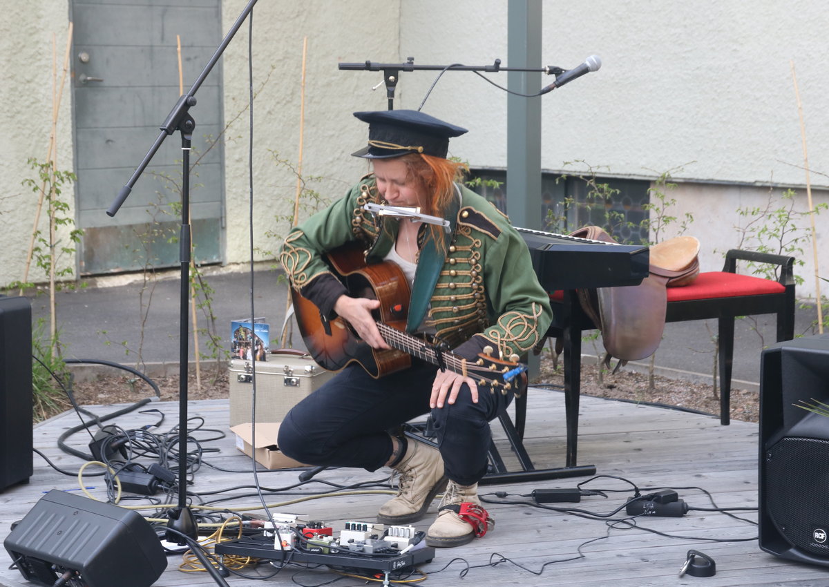 Odens scen vid Folkets Hus i Lidköping är verkligen en perfekt spelplats en fin kväll. Konst och liv i ett och samtidigt. En sitter avskilt, men ändå med staden i sin split vision.