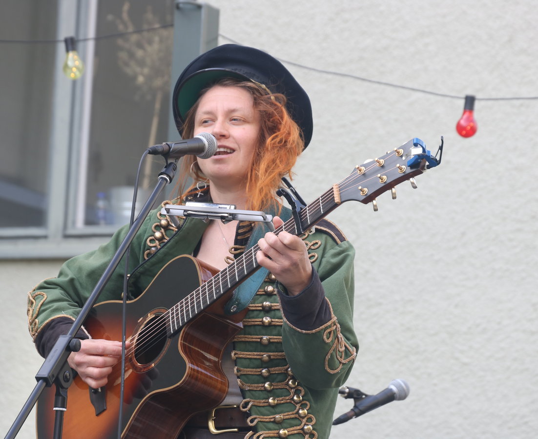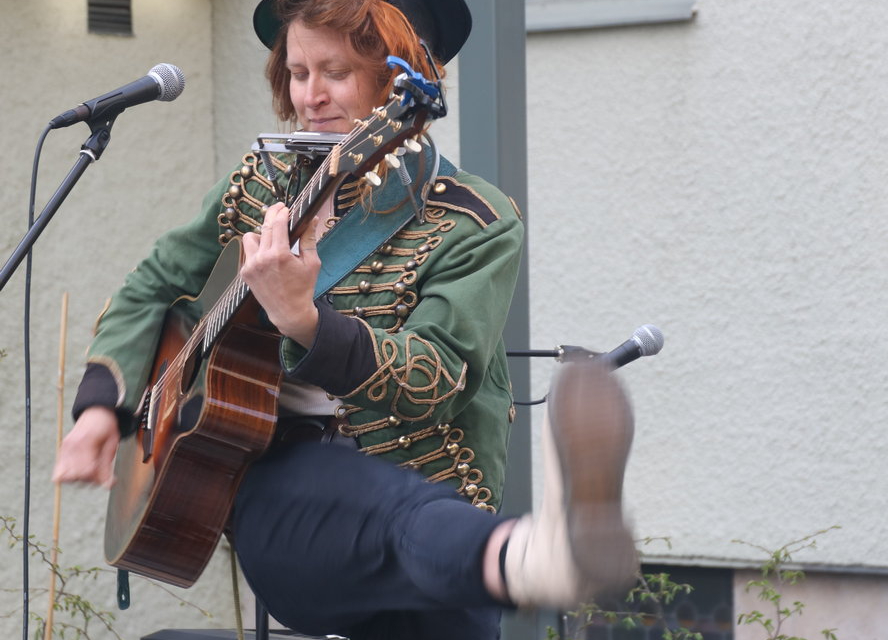 Hon är en effektiv gitarrist. Gitarrspelet är tufft och varierat. Och hon lägger stämningsstämmor på munspel som hon har i en ställning runt halsen så hon själv kan addera munspelet till gitarrspelet.