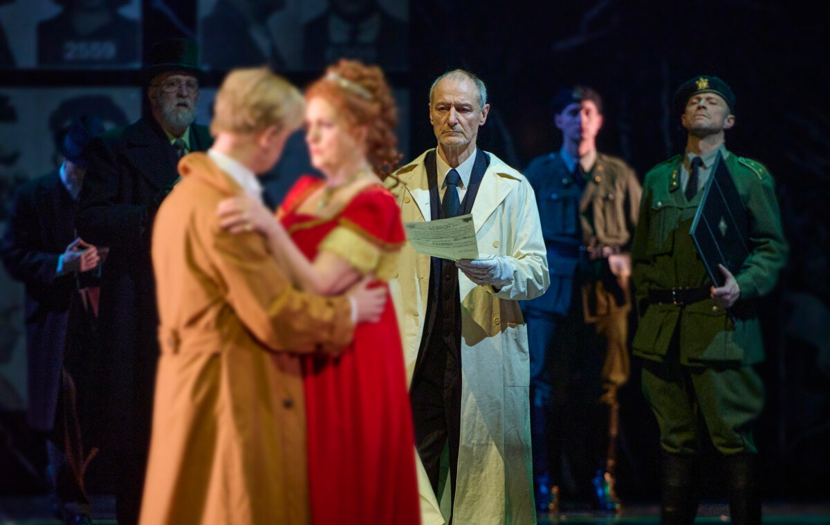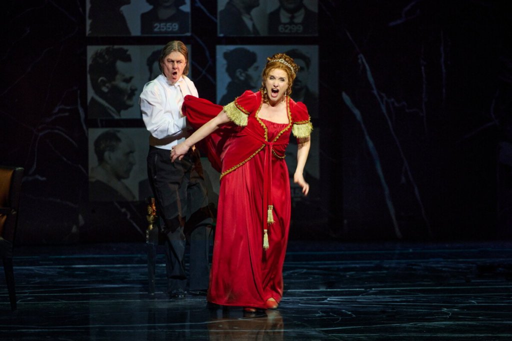 En man, konstnären Mario Cavaradossi spelad av tenoren Tomas Lind är förälskad i Floria Tosca spelad av sopranen Carolina Sandgren. Livet slår sig in i romansens rosa moln. Dels i form av hennes (i sanningens namn litet schåpiga) svartsjuka. Men dess funktion är att få kärleken att verka starkare, särskilt genom att den är helt obefogad. Det är krig i Italien och den andre mannen är Scarpia spelad av Mats Persson. Han är en rå och hänsynslös förtryckare besluten att utnyttja sin makt. Han är besatt av tanken att knulla med Tosca och är beredd att använda det våld och den makt hans position ger för att nå sitt mål. Han tänker att hon ska släppa till för att rädda sin älskade Cavaradossi som han arresterat och torterar. Det är ett högspänningsfält som håller intresset på topp. Jag upp fattar föreställningen som klassisk. En närliggande jämförelse är Wermland Operas från i vintras (se min recension på https://boborg.se/2024/02/26/tosca-wermland-opera-karlstad/). Trots att det är samma storyupplevelser av helt olika slag. I Wermland lät man operans yttre ömsa skinn. Allt det utvändiga var annorlunda. Men dramat var detsamma. Här på GöteborgsOperan uppfattar jag tolkningen som traditionell trots att dramat placerats i vad som ser ut som trettiotalet.