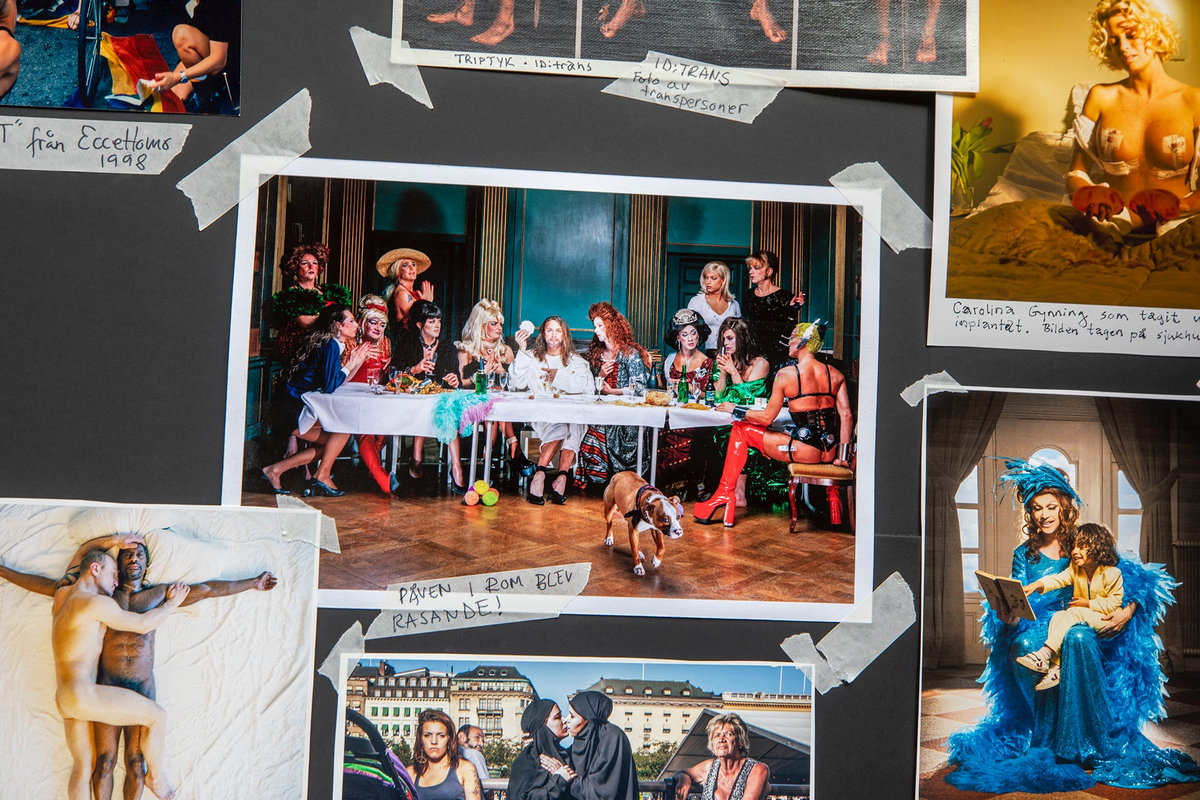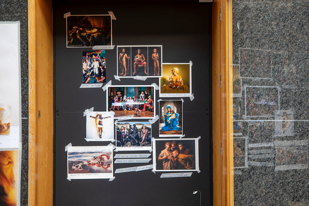 En efter en kommer övriga klassiker på plats, ”Drömmarnas kyss” (två kvinnor i heltäckande kläder som kysser varandra på en parkbänk i Kungsträdgården), Carolina Gynning om tagit ur sina bröstimplantat som hon håller i händerna, ”Tomas tvivlaren” inspirerad av 1600-talsmästaren Caravaggio, med flera.