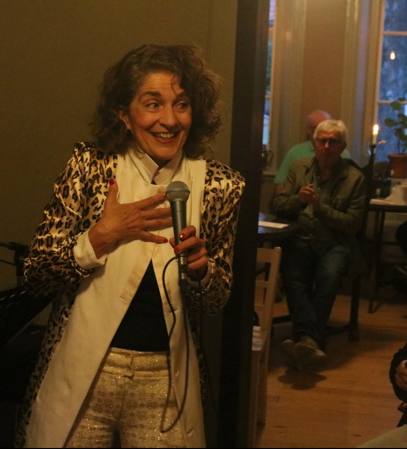 I fredags kväll framträdde hon på Christians Café tillsammans med sångaren och pianoackompanjatören Bernt Andersson och Leif Olsson i ett program med franska chansoner. Programmet innehåller kända och älskade sånger av Charles Trenet, Gilbert Bécaut och belgaren Jacques Brel.