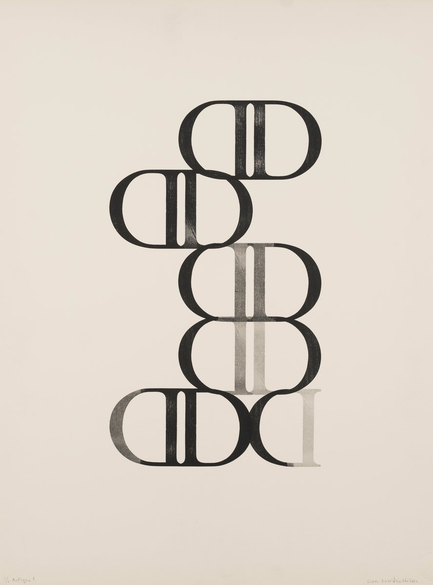Lina Nordenströms bild Antiqua 1 är bokstäver tryckta med en sån känslighet och precision att blicken blir totalt fångad och fascinerad.