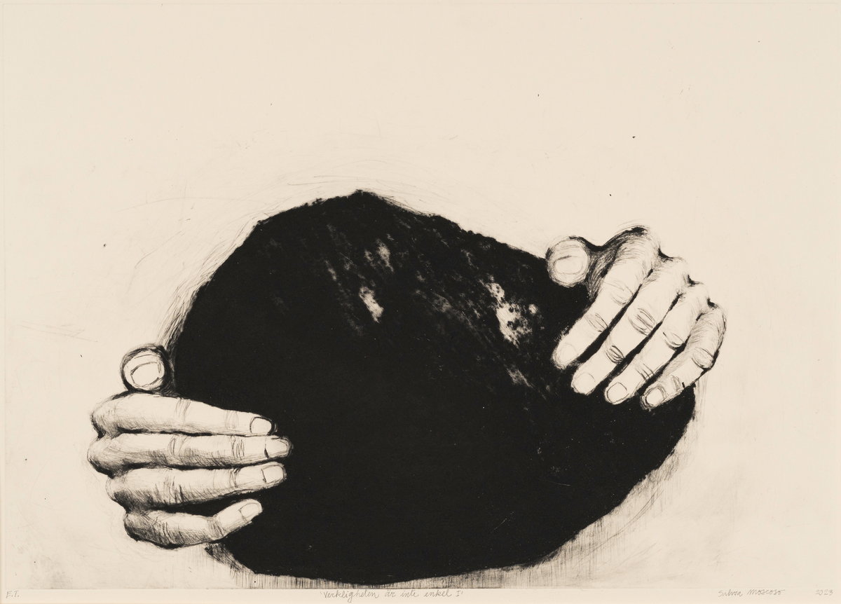 Frågan är om inte Silvia Moscosos bild Vekligheten är inte enkel blir min speciella favorit. Två händer griper om något obestämt okänt. Kanske livet. Den fyller en med olika tankar och associationer som en god dikt.