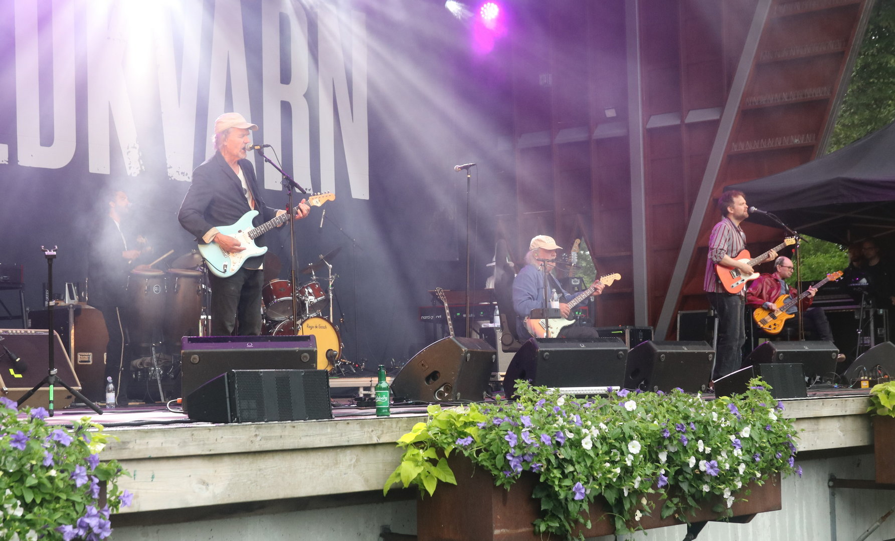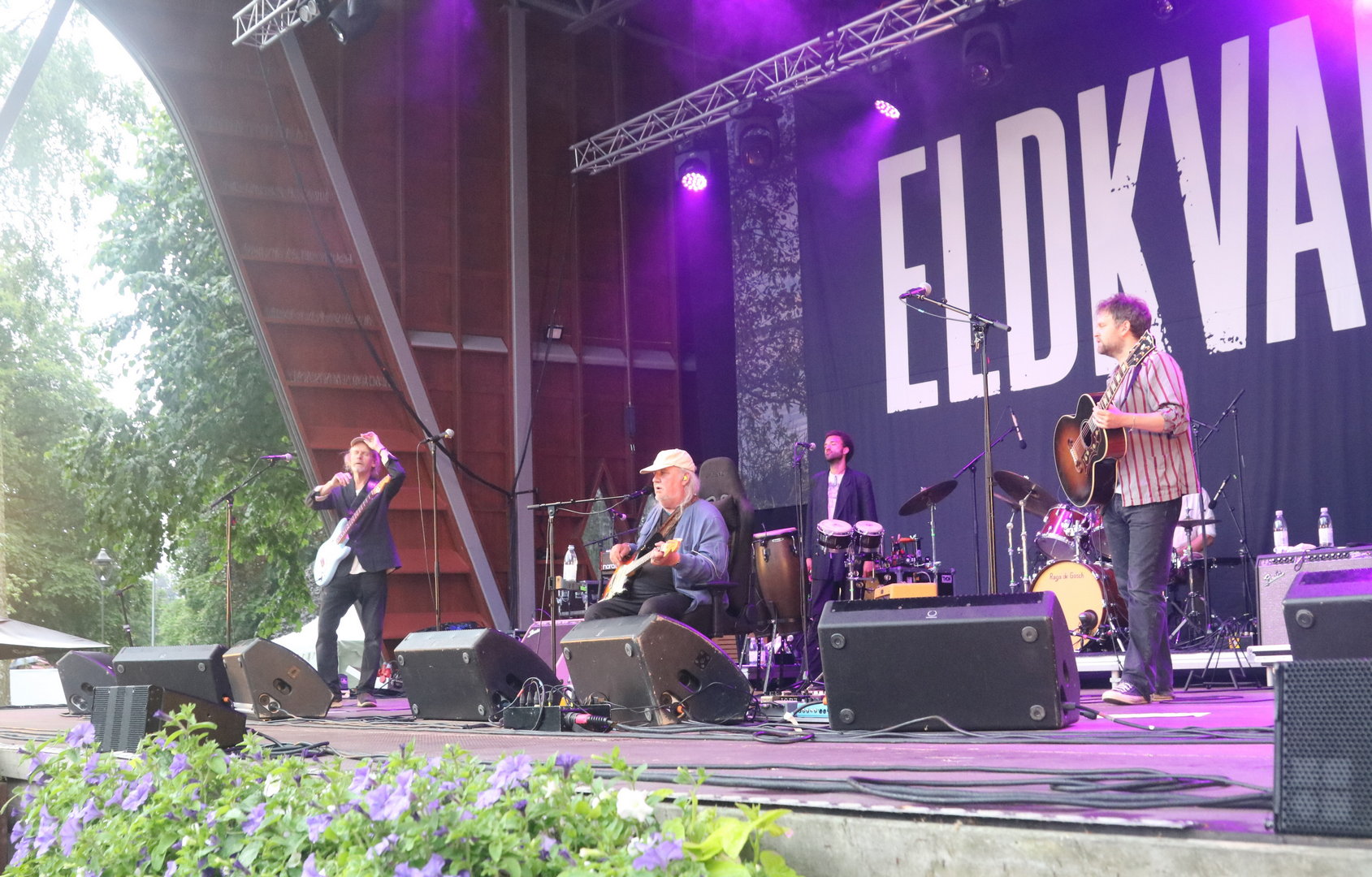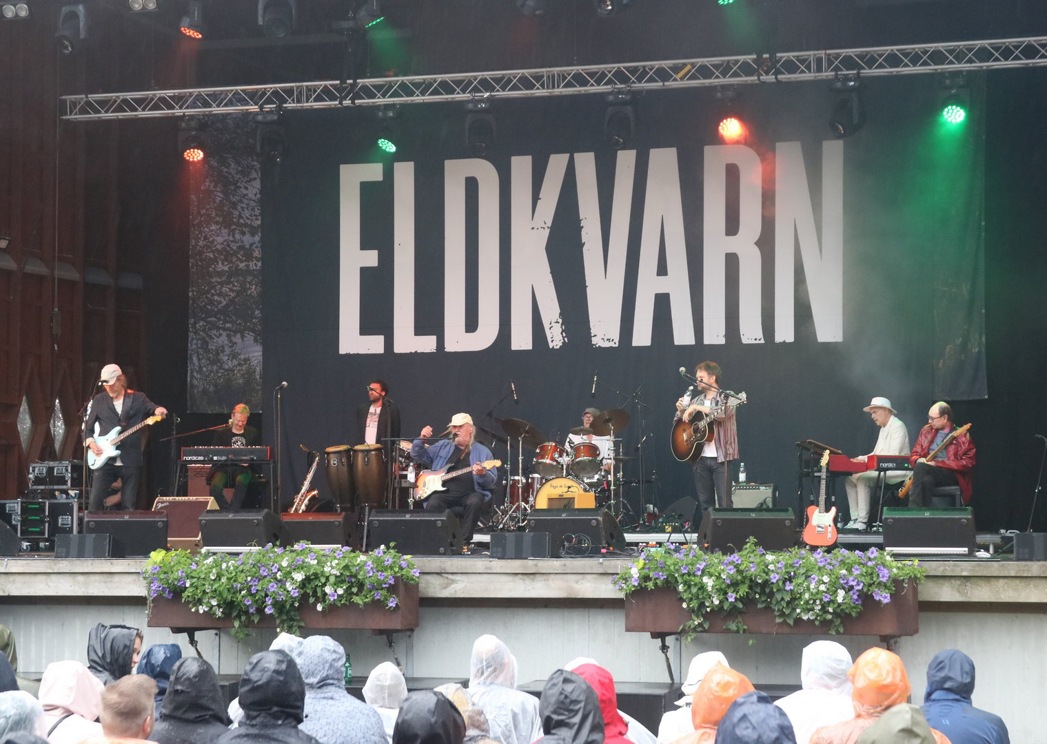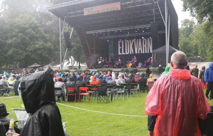 I lördags var det dags för Eldkvarn att ta ton på Dina-scenen i Stadsträdgården Lidköping. Regnet strilade ovanligt blött och oförsonligt. Ändå var det massor av folk i blötan. För man vet ju aldrig. Den här turnén kan ju vara den sista. Och kanske kan fina musikminnen bekräftas.