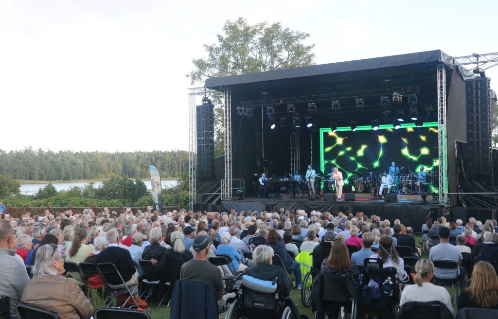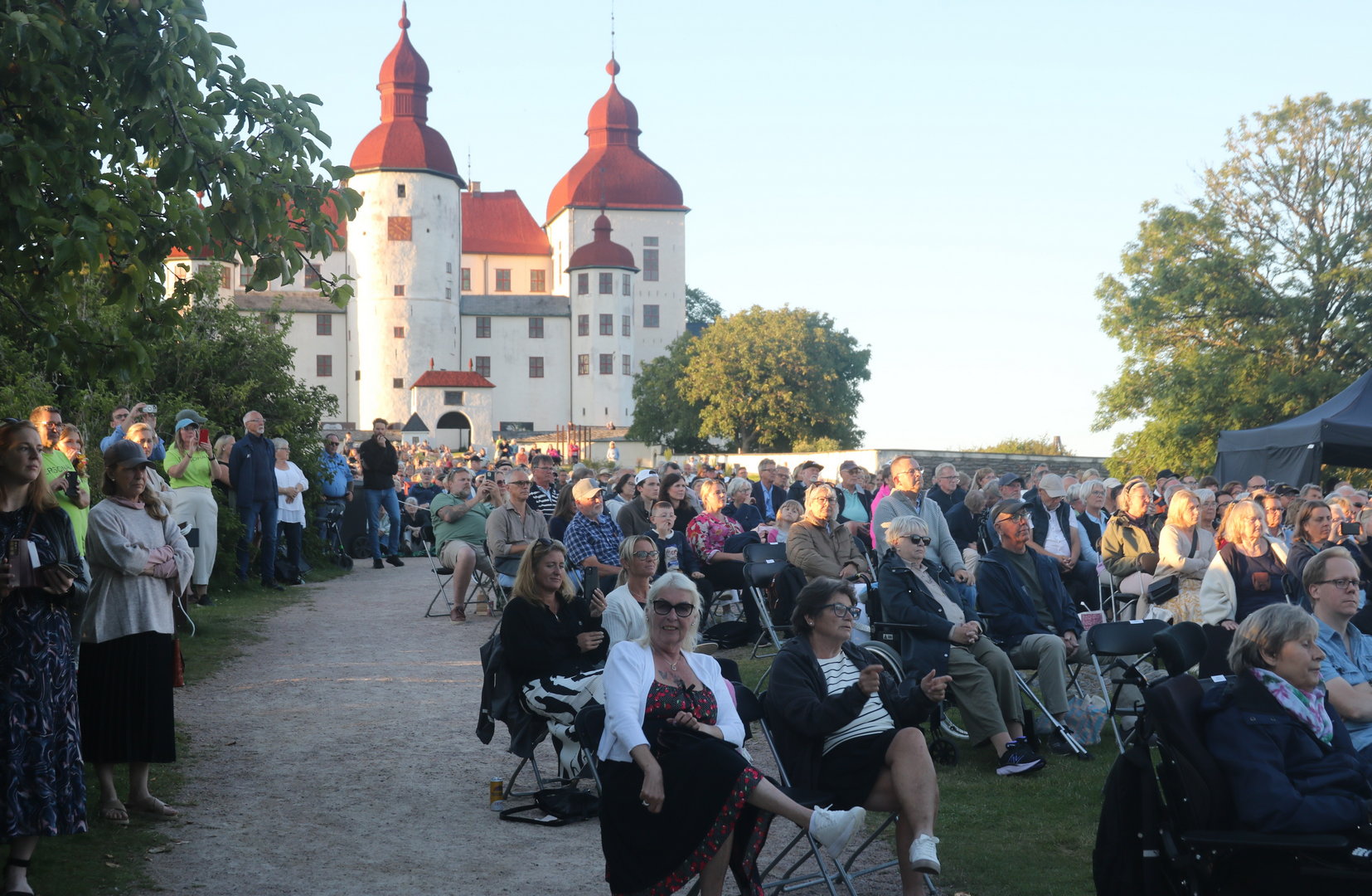 Vilket myller av fans Tommy Körberg lockade den här fina sommarkvällen. Slänten från slottet på Läckö är en suverän spelplats för stor publik. Klart man blir på gott humör med prunkande grönska och glittrande vatten i sin split vision som inramning till underhållningen.