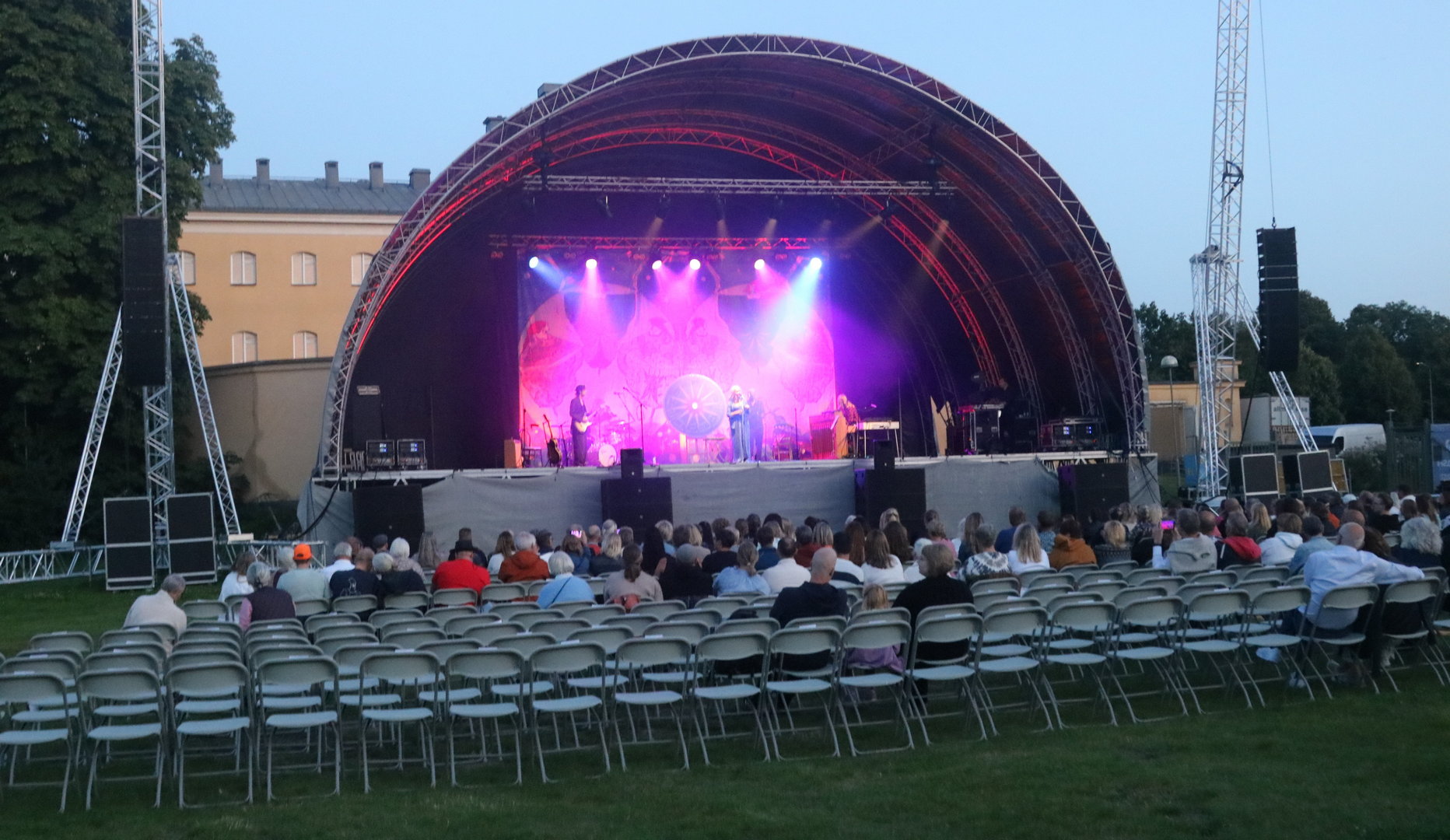 Det fanns gott om tomma stolar på Waterside Mariestads utescen. Det innebär att det finns många som missade en fin konsertkväll. Det var myggigt framför utescenen det förstod jag först efter konserten när det började klia. För medans showen den pågick tog Lisa Ekdahl och hennes musik all uppmärksamhet och inte ens myggen kunde distrahera.