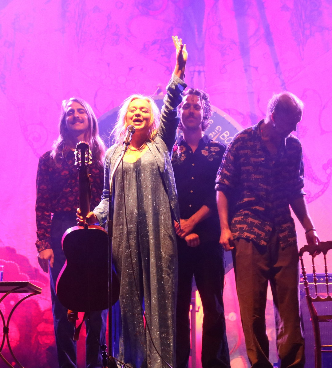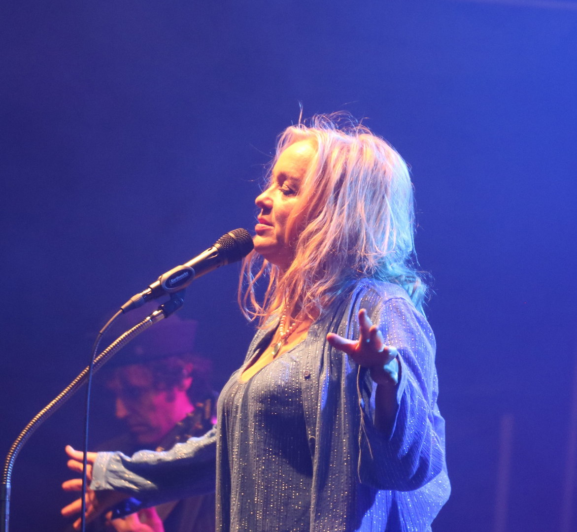Hon kom den här kvällen med ett fyrmannaband med traditionell rockbandssättning. De levererade ett utmärkt komp. Deras sound varierades och förmerades genom att några av musikerna dubblerade på andra instrument. Basisten Andreas Nordell bytte till kontrabas emellanåt, gitarristen bytte instrument för att få det rätta soundet till varje låt och keyboardisten alternerade på saxar på ett sätt som tillförde mycket.