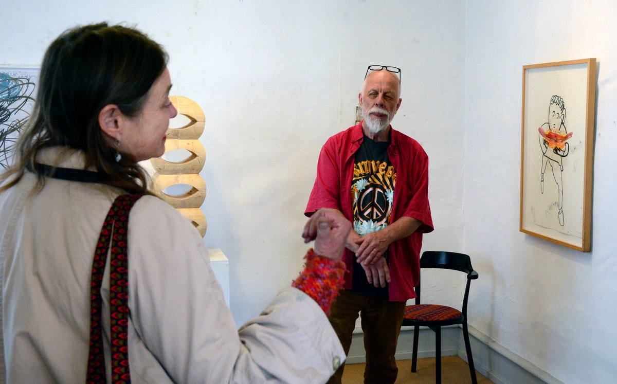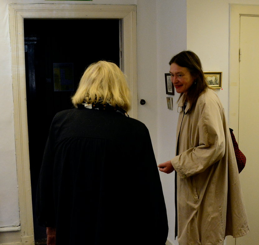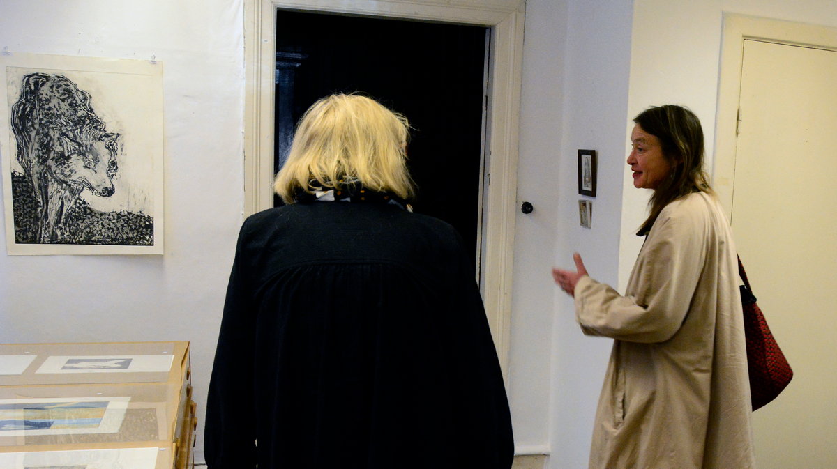 Under lördagen gick vår nya tillfälliga granne i Rosa huset runt och såg på utstllningarna. Hon kommer från Dresden och är gästgrafiker hos Konstgrafiska.