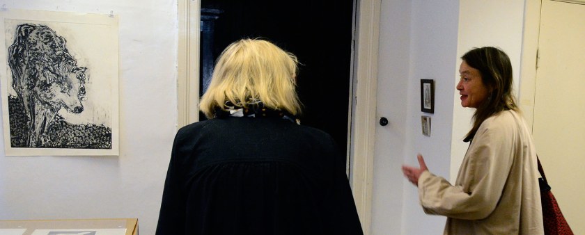 Under lördagen gick vår nya tillfälliga granne i Rosa huset runt och såg på utstllningarna. Hon kommer från Dresden och är gästgrafiker hos Konstgrafiska.