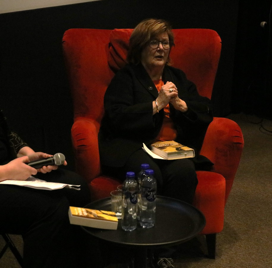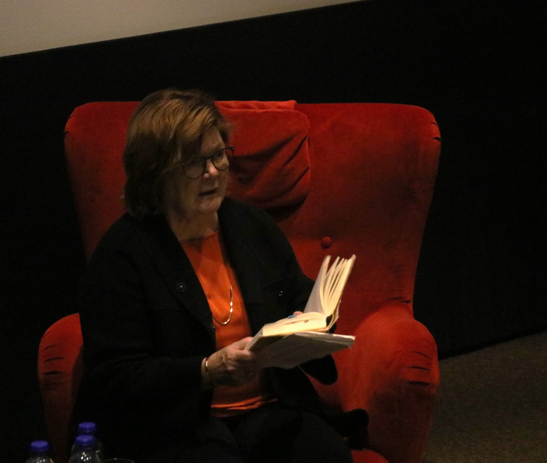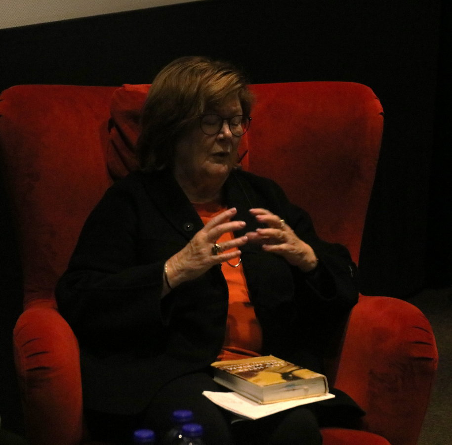Samtalet kretsade kring hennes roman gediget seriösa och mycket drabbande Jag heter inte Miriam från 20I4 (ett ex av boken ingick i biljettpriset!). Boken handlar om romska Miriam som bl.a. hamnade i zigenaravdelningen i koncentrationslägret Auschwitz. Hon kom senare med de så kallade vita bussarna i Nässjö.