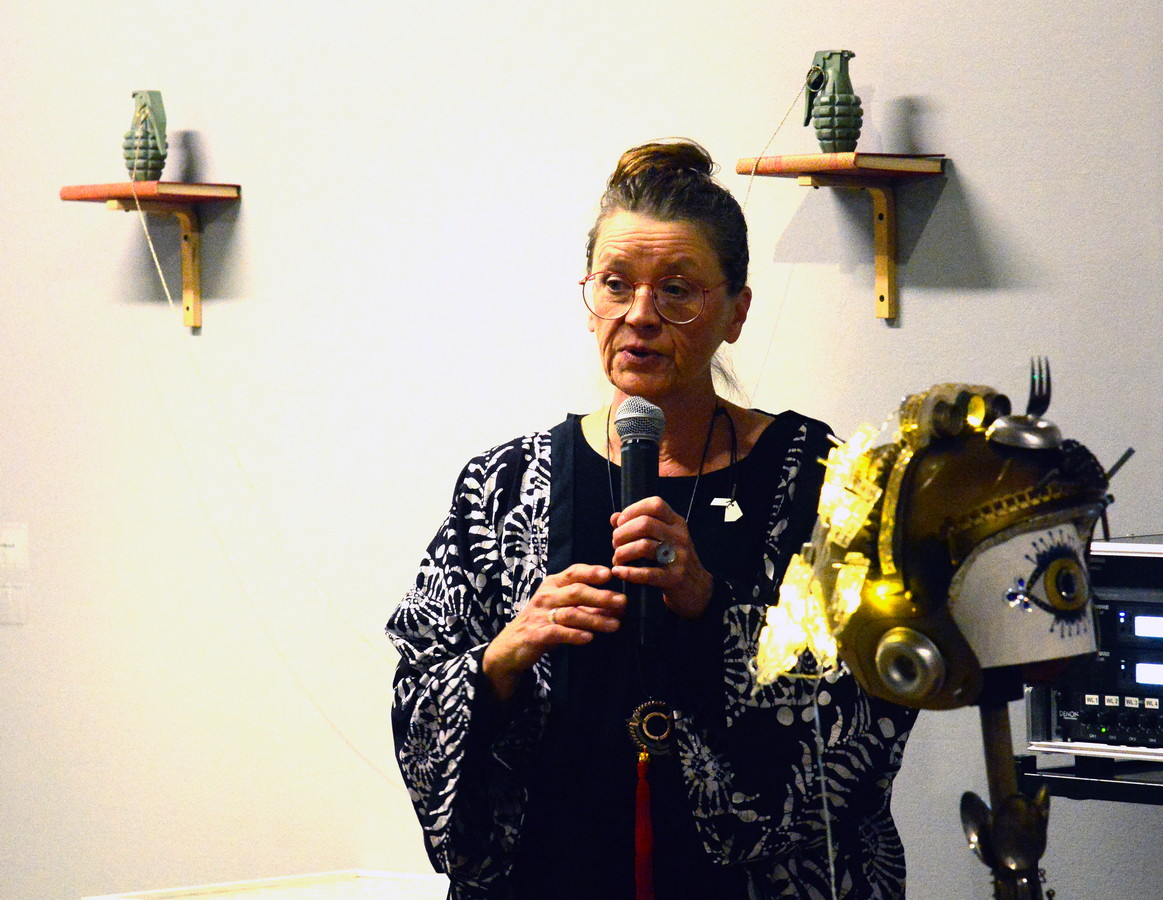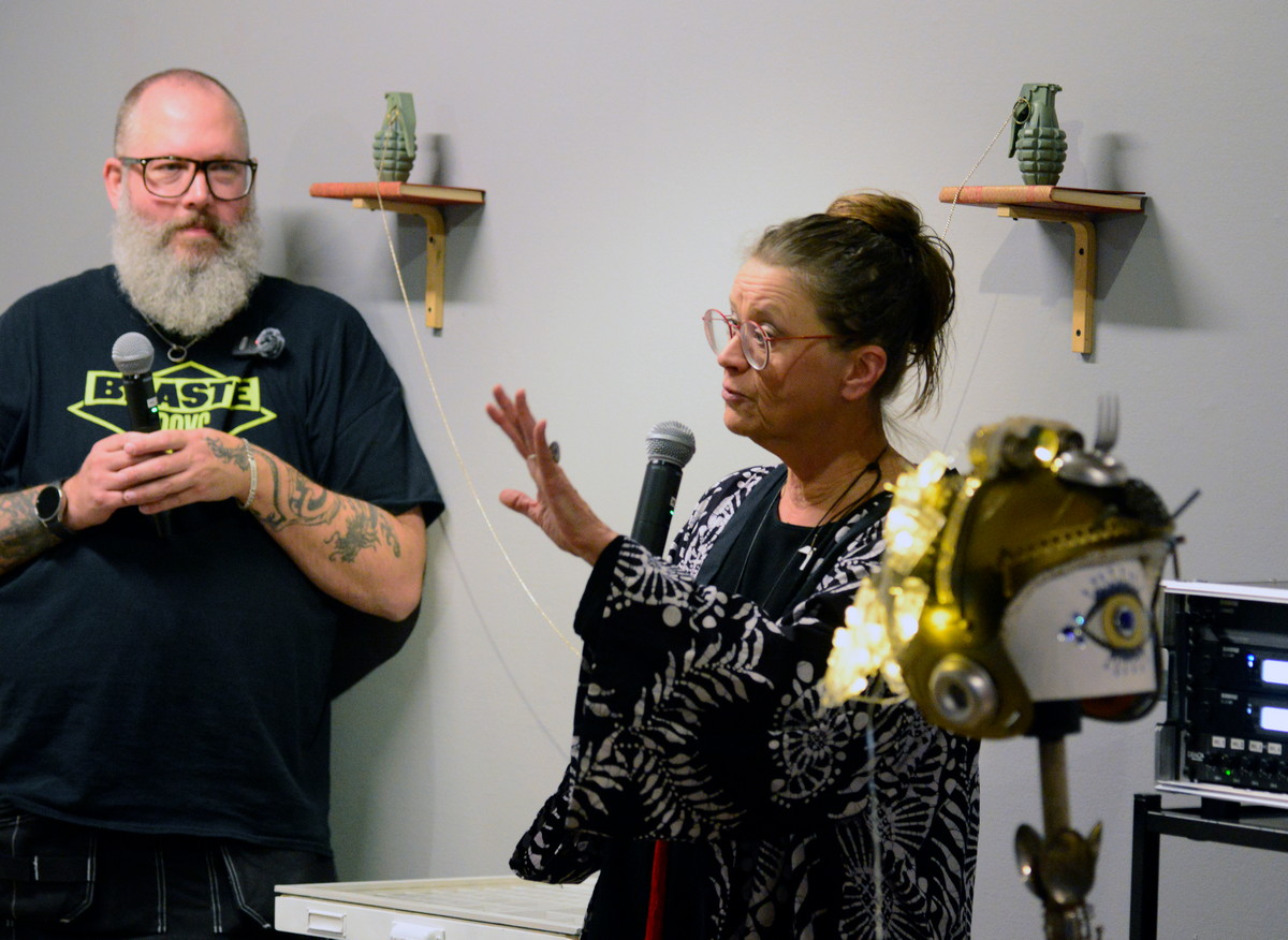 Vid öppnandet den 19 september samtalade intendent Tomas Asplund Gustafsson med konstnären inför publik i Lilla galleriet i konstmuseet.