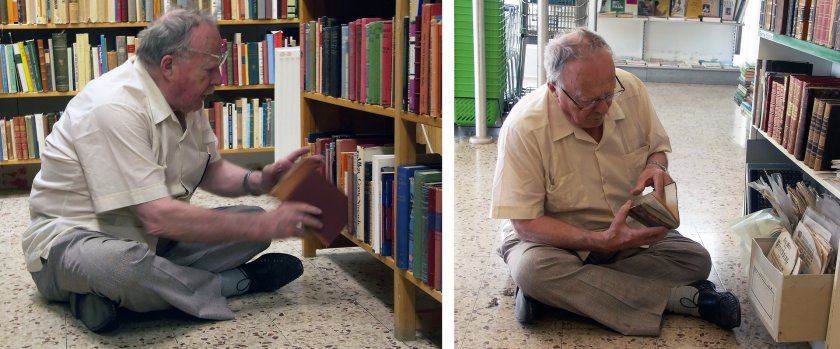 Jan Myrdal och Gun Kessle besökte Bo Björkdahls antikvariat första gången sommaren 2006. Det blev många nya volymer till Myrdals stora bibliotek. Därefter fanns det på Jan Myrdals karta; med besök när tillfälle gavs. — Foto Rune Lindström.