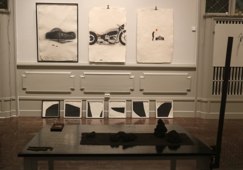 Han har sedan ett tjugotal år sedan arbetat med stora handgjorda papper. De har ett uttryck i sig han tycker om att utgå ifrån med sin återhållna, lågmält, men påtagligt levande yta. En del av hans arbeten är en svart geometrisk figur på en sådan yta, en kvadrat eller en cirkel, en punkt eller en enkel form av linjer. Andra gånger är det mera expressivt med ytan fläckad. Minimalismen verkar här vara stilidealet. Less is more. De här bilderna skapar ett lugn med stort utrymme för egna tankar. Det blir ett problem i den här utställningen som är så maxat fullmatad och (över)full av intryck. Man får försöka att i sin inre syn se hur de enstaka bilderna i egen kraft skulle kunna funka som tankens replipunkter. Det kan ibland kännas väl anspråksfullt på gränsen till pretentiöst. Men det är klart att en konstnär har anspråk.