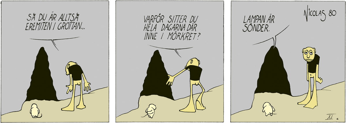 Serierna är bra tecknade i sin koncentration på det väsentliga. Linjerna vet vart de ska. Vissa typer kommer igen. Det är kärnfullt med en lätt absurd humor. Det invanda rubbas och vrickas till så det visar en annan sida också. Det är kul och haha-upplevelserna leder till aha-insikter.
