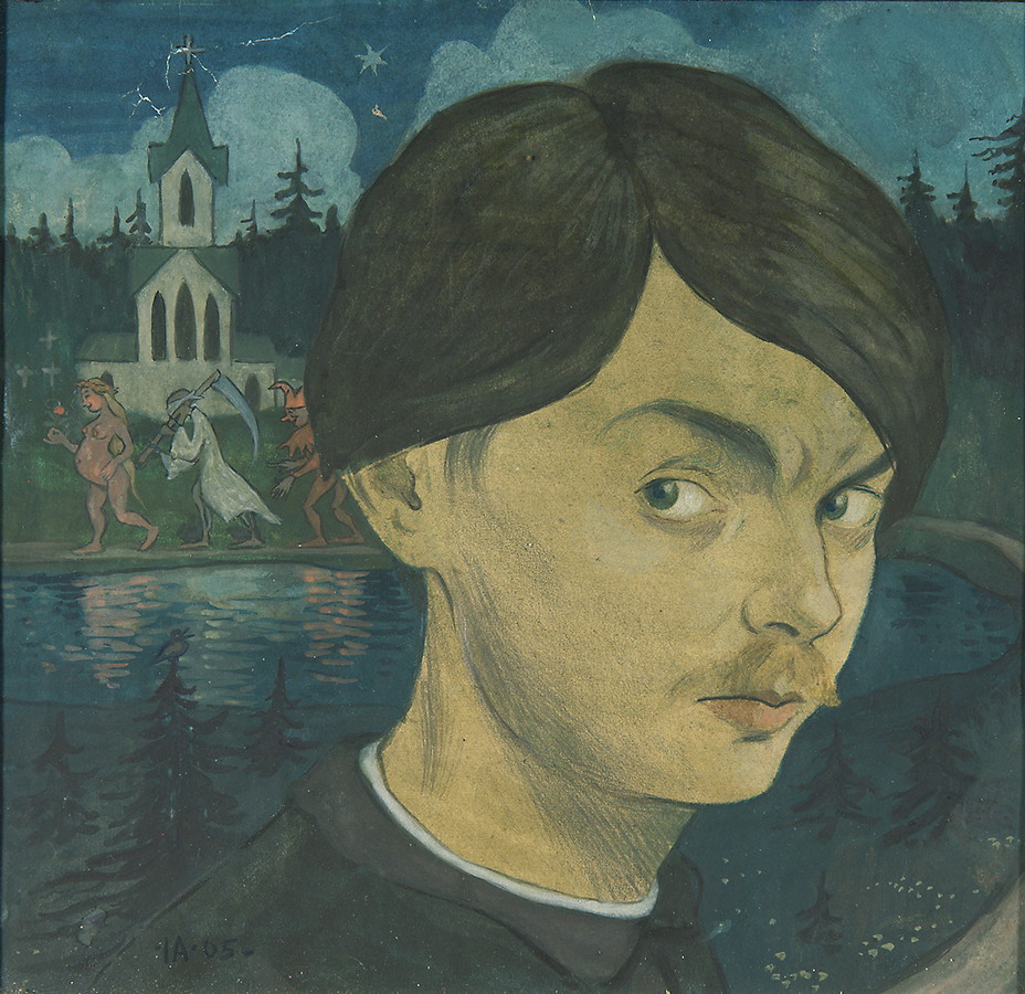 Karl Norström, Varbergs fäste, 1893, (foto Prins Eugens Waldemarsudde) — Ivar Arosenius, Självporträtt, 1905, (foto Thielska Galleriet)