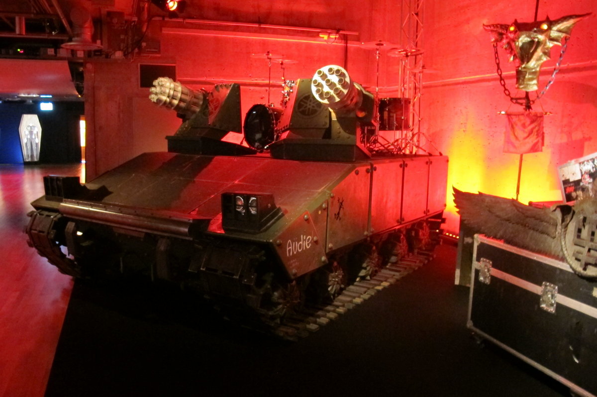 Mest anslående är kanske stridsvagnen Audie, 1,5 ton tung, som militärhistorienördhårdrockarna Sabaton har med sig på turnér som blickfång, men också som podium för trummisen.