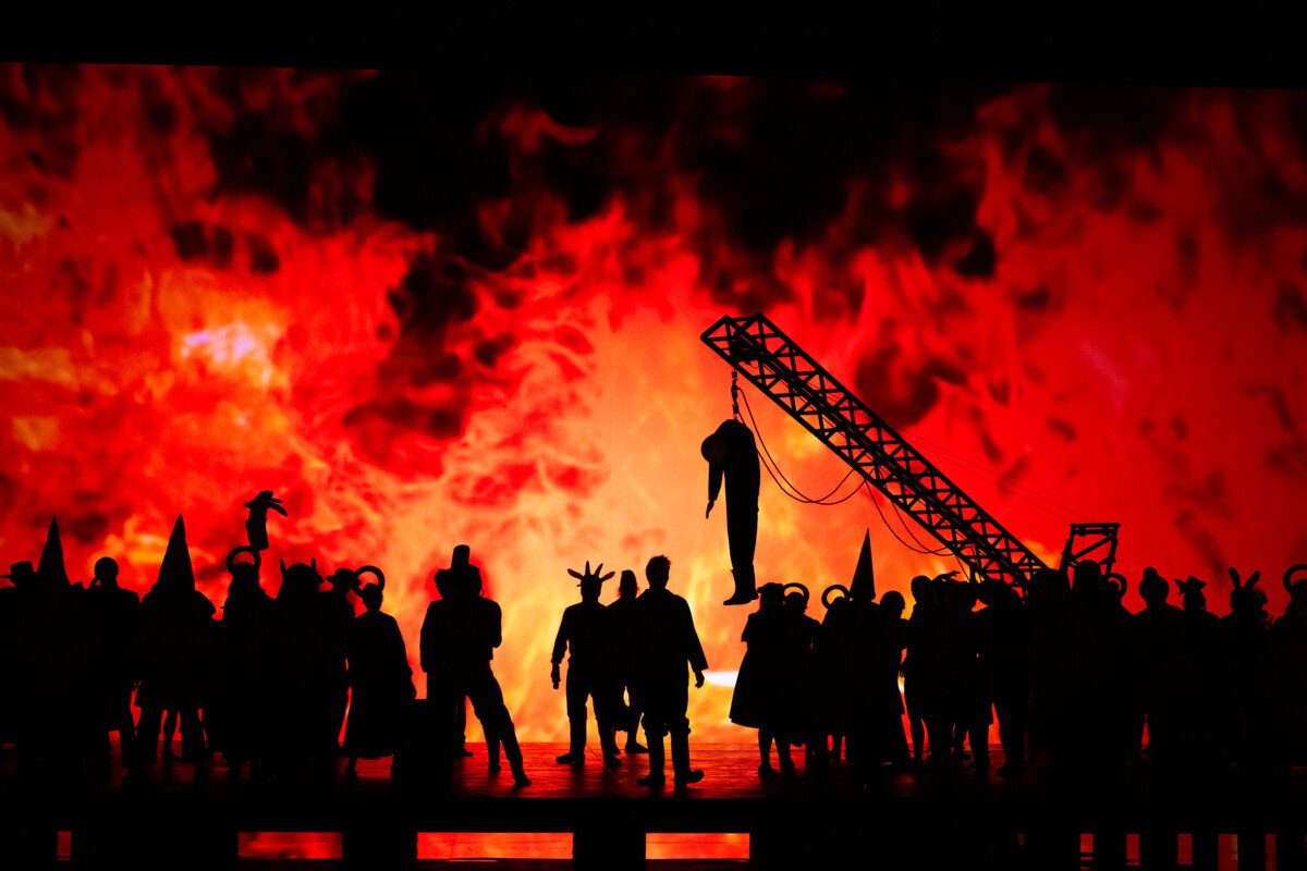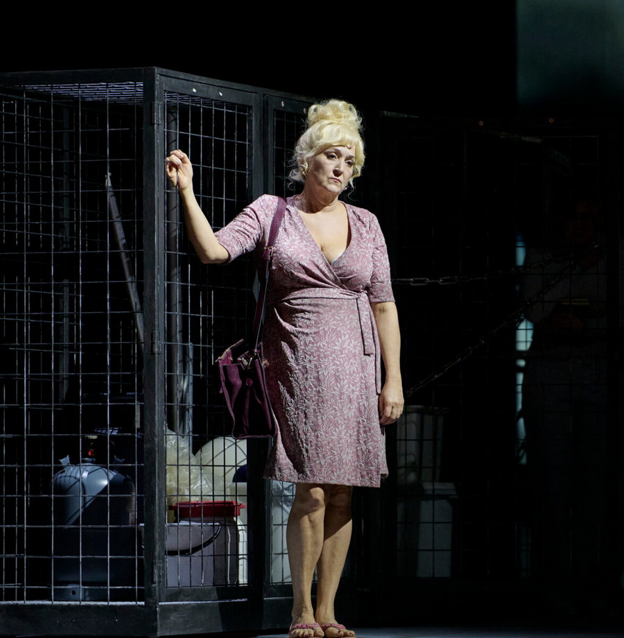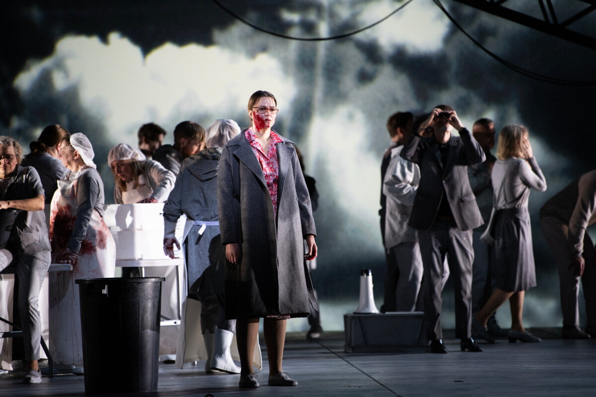 I den uppsättning av internationella storstjärnan Netia Jones som nu spelas på Göteborgsoperan läggs ytterligare en dimension till. I ett samarbete mellan regissören och videoproffsen Lightmap adderas filmade lager till scenografin som ska förstärka och tragedin och åskådliggöra den miljö den utspelas i. Havet som redan skildras så starkt i musiken fyller hela synfältet med filmade grå hotfulla vågor. I pjäsen har en pojke drunknat och här återkommer han flera gånger gossen i filmade undervattensscener som projiceras stort över hela scenen. Den pedagogiska niten och tydligheten slår över i övertydlighet som emellanåt känns rent prövande. Jag har inget emot filmade inslag i opera. Tvärtom. Men här blir det trots att det är så vältänkt och välgjort bara för mycket. De avslutande scenerna i ett brinnande rödglödgat helvete känns sin välmening till trots apart här.