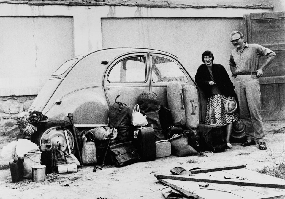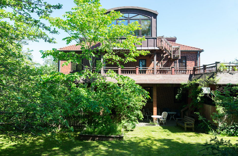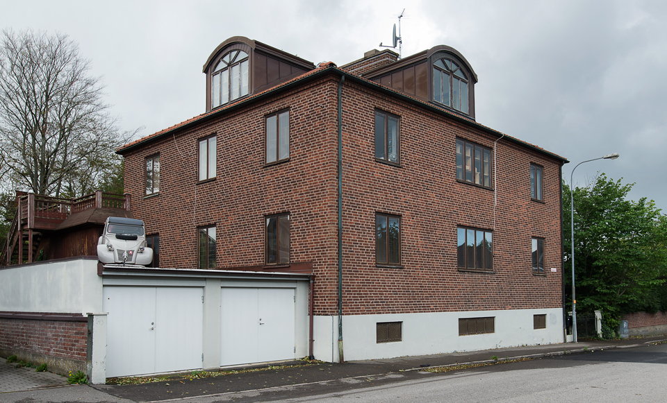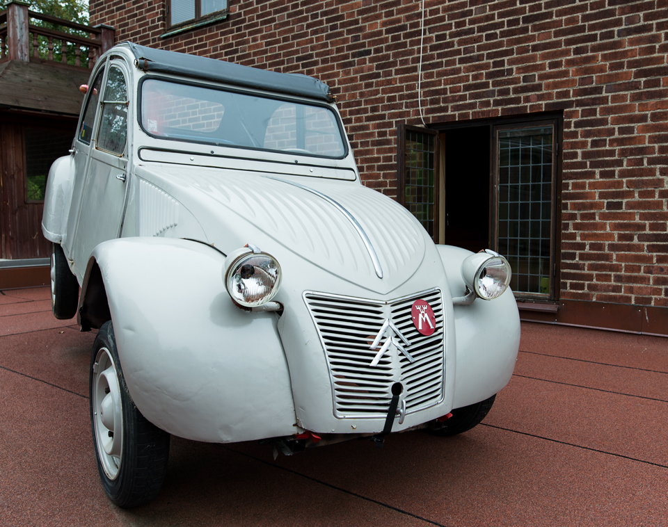 Biblioteket; entrén, trädgården och ”lillcittran” (2CV)