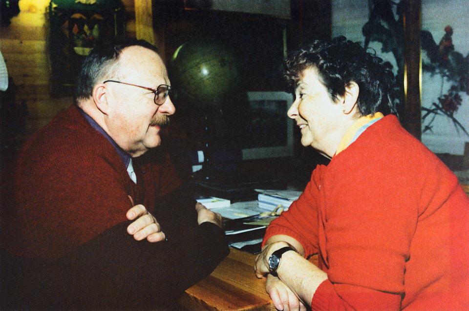Jan Myrdal och Janken Myrdal (t.v.) och Jan Myrdal samt Balzacrummet (t.h.)