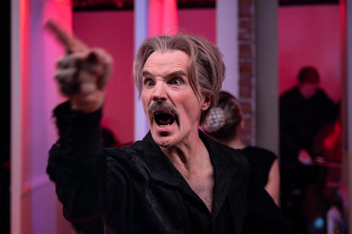 I den här musikalen gestaltar skådespeleriet inte trovärdiga människor utan lustiga, stiliserade och karikerade, figurer. Och det kan de här artisterna. Lars Hjertner är den i GöteborgsOperans ensemble som agerar mest. Han har en förtydligande gest och en utfunderad min för allt. Hans dubbelelaborerade rollgestaltning skulle fungera som stumfilm.