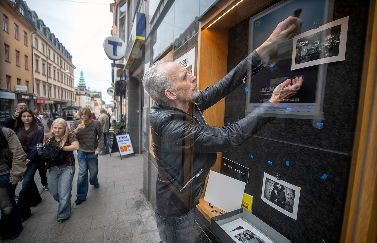 Galleristen Ulf Sandlund stängde för gott på torsdagen sitt lilla Galleri Skåpet, skyltskåpet i Götgatsbacken, precis vid T-baneutgången Hökens gata.