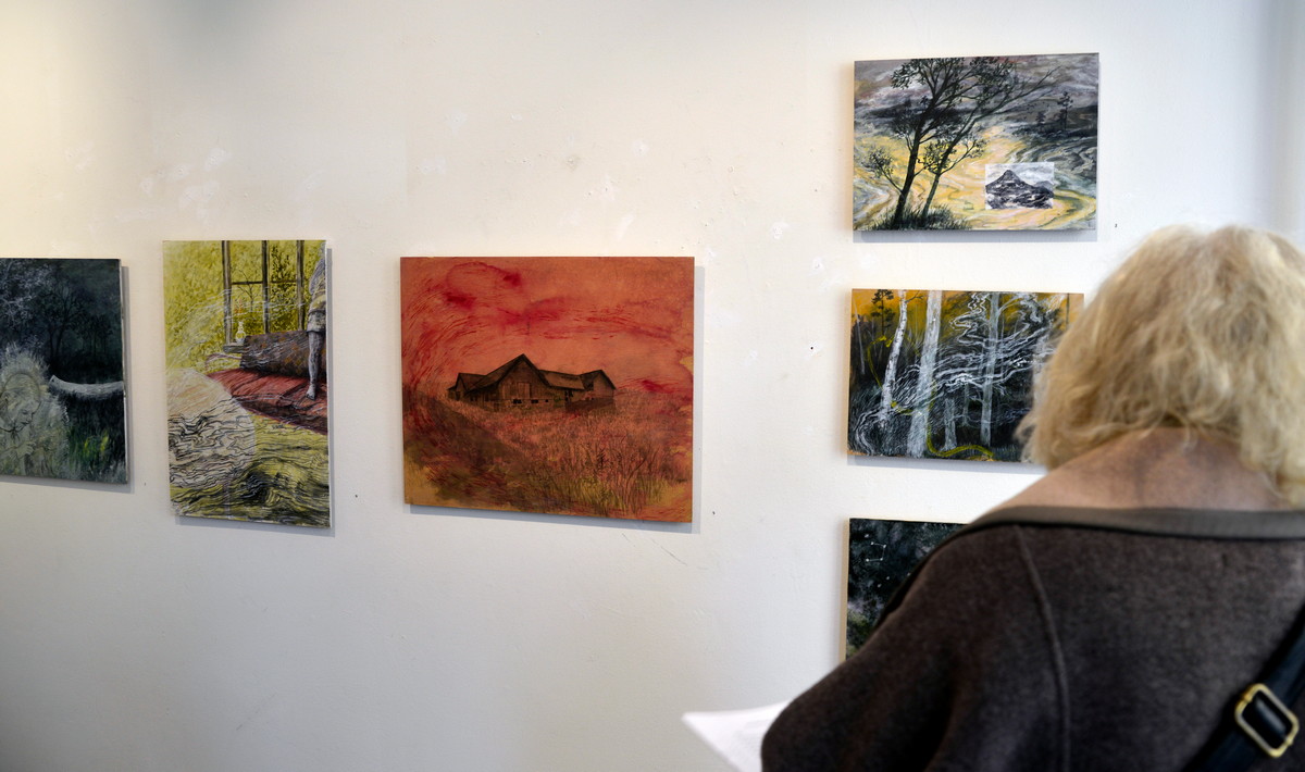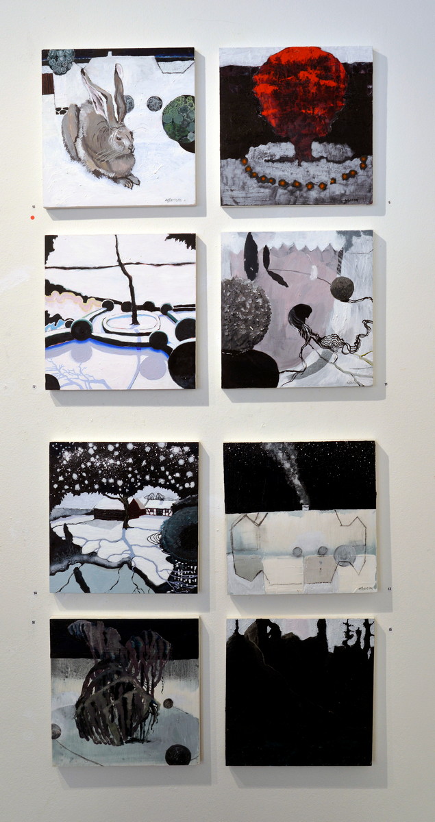 Nu visar hon ett dussin målningar. Alla mer eller mindre abstrakta men tryggt vilande i naturen. Byggda så att de klarar att man bortser från det. Även som ren abstraktion är de fungerande bilder. Flera i ett behändigt mindre format som borde passa många av galleriets trogna besökare. En formfast målning på 30 x 30 cm kan alltid få en plats även om det börjar bli fullt på väggarna.