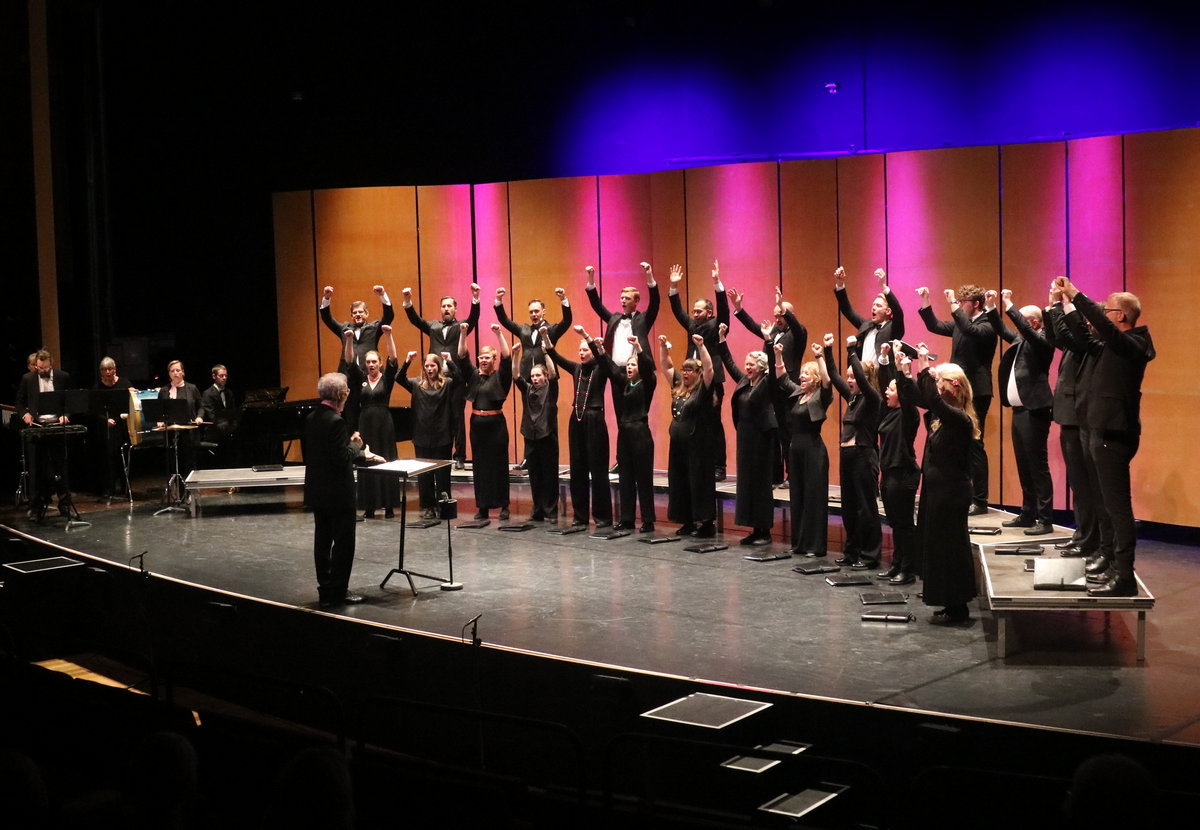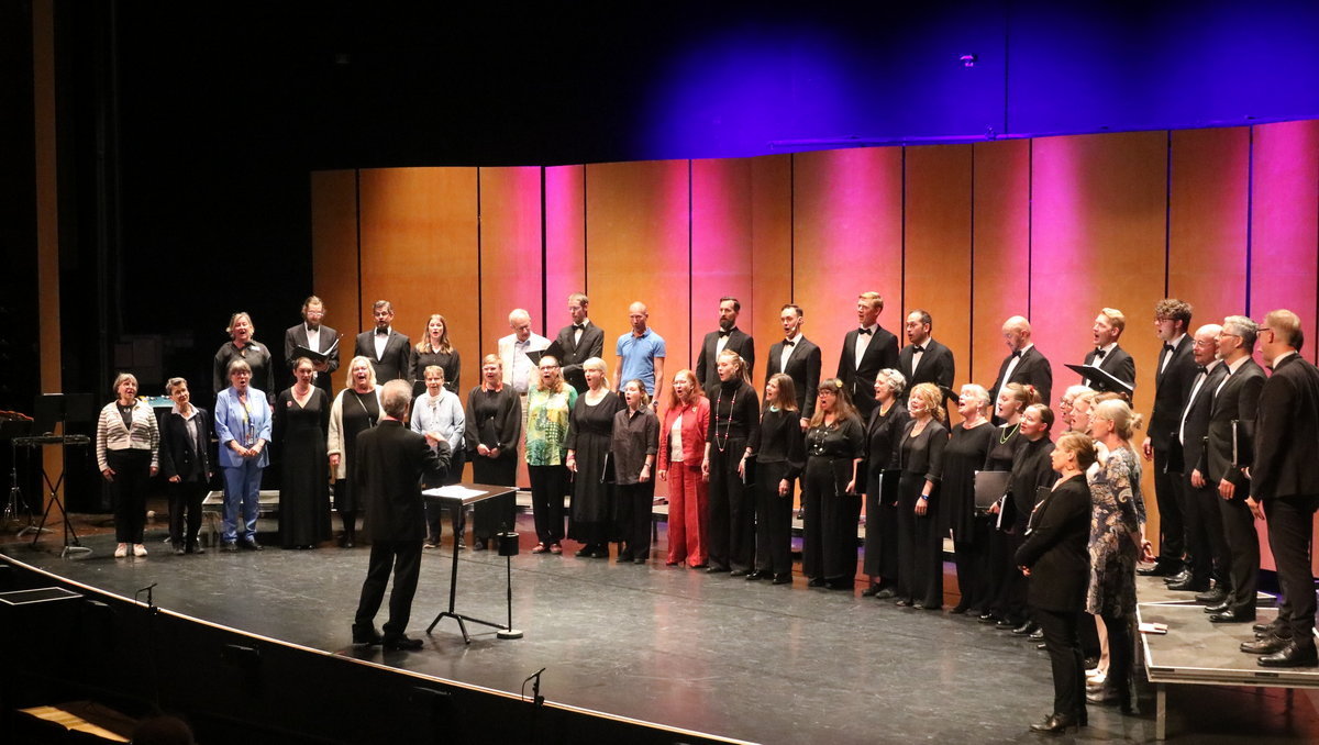 Så kom ett särskilt generöst inslag i konserten. Simon Kim Phipps bjöd dem i publiken som ville komma upp på scen att göra det och utöka kören. Även om inte jag vågade var det många andra som gjorde det. Det blev sångargemenskap i praktiken och det kändes fint.