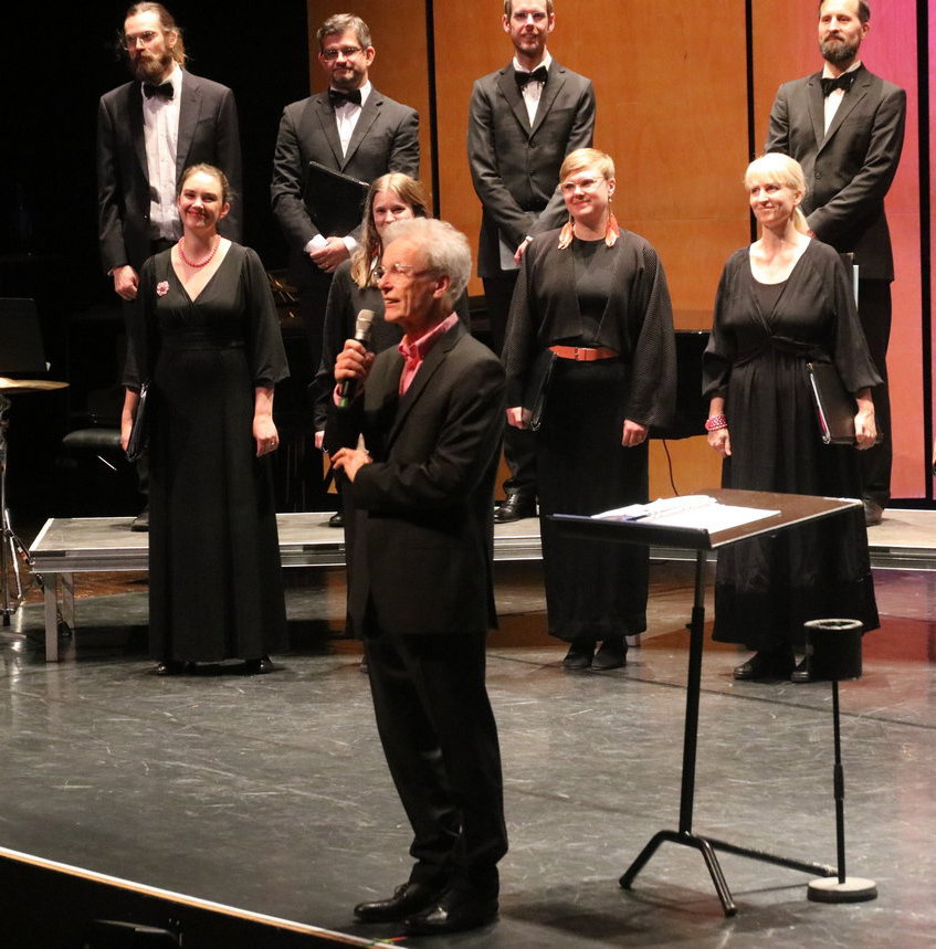 De hade ett både intressant och pedagogiskt mellansnack som gjordes på ett lättsamt och småroligt sätt av två körmedlemmar som klev fram emellanåt.