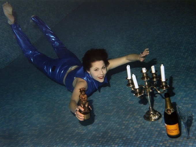Ännu ett strå vassare är bilden av Idde Schultz. Hon fick Rockbjörnen 1985 för låten Fiskarna i havet. Peter Kjellerås utrustade sig med en undervattenskamera och fick pristagaren att posera under vattnet med prisstatyetten, en kandelaber och en flaska bubbel i Polen på Radisson Hotel. En sån bild fixar bara de bästa.