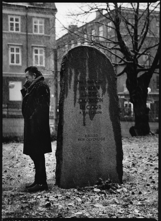 Han arrangera bilder också. Bilden av Ulf Lundell vid Lasse Lucidors gravsten är en tanke som blev en händelse. Och en klassisk bild i gråväder med den i sten huggna texten ”Kallad den olycklige” i fokus.