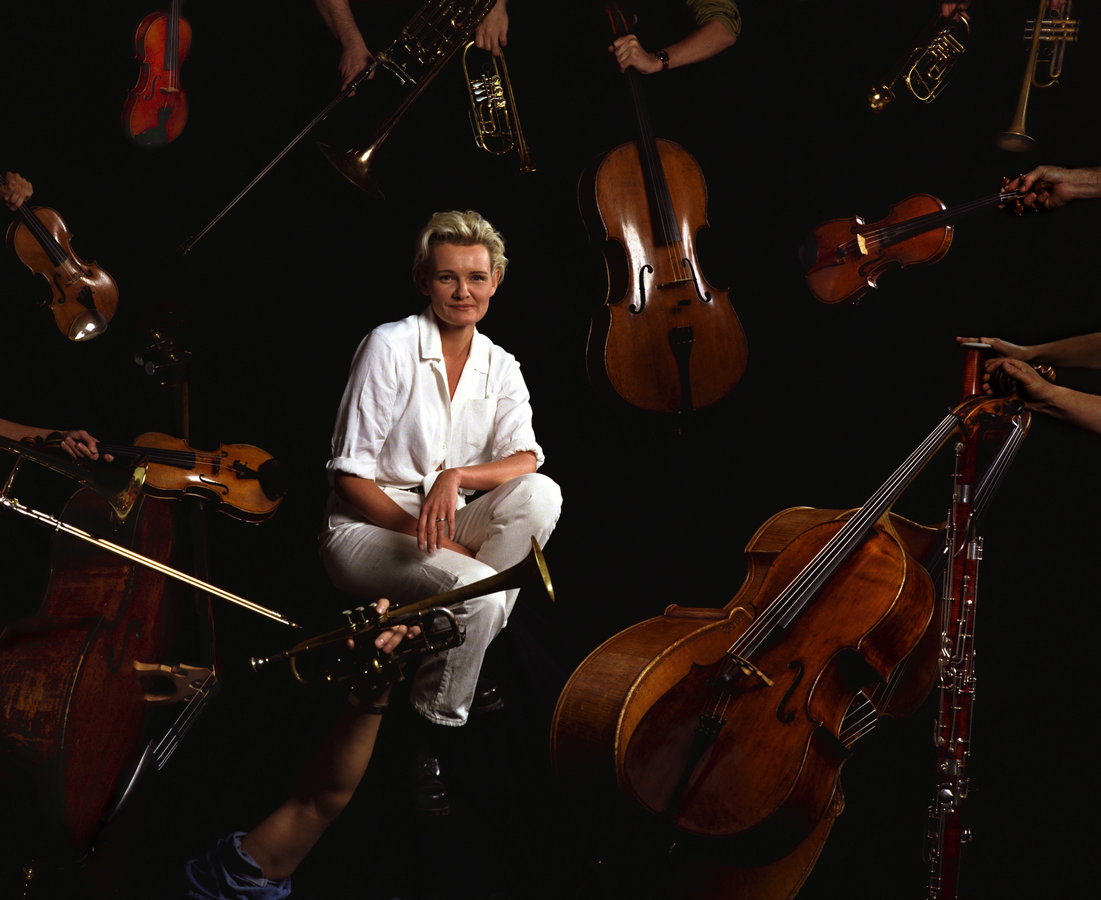 Han lyckades också få Radiosymfonikerna att sträcka in sina dyrbara instrument i en ring runt Eva Dahlgren och det blev förstås en bild utöver det vanliga.